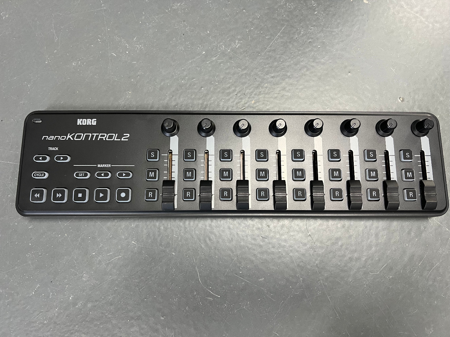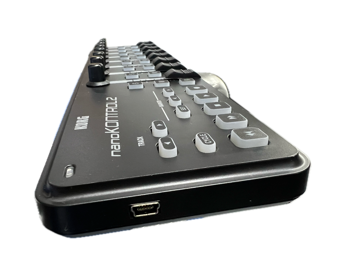 - Transport-Taster: Rew/FF/Stop/Play/Rec, Cycle-Taster, Marker-Taster, Track-Taster