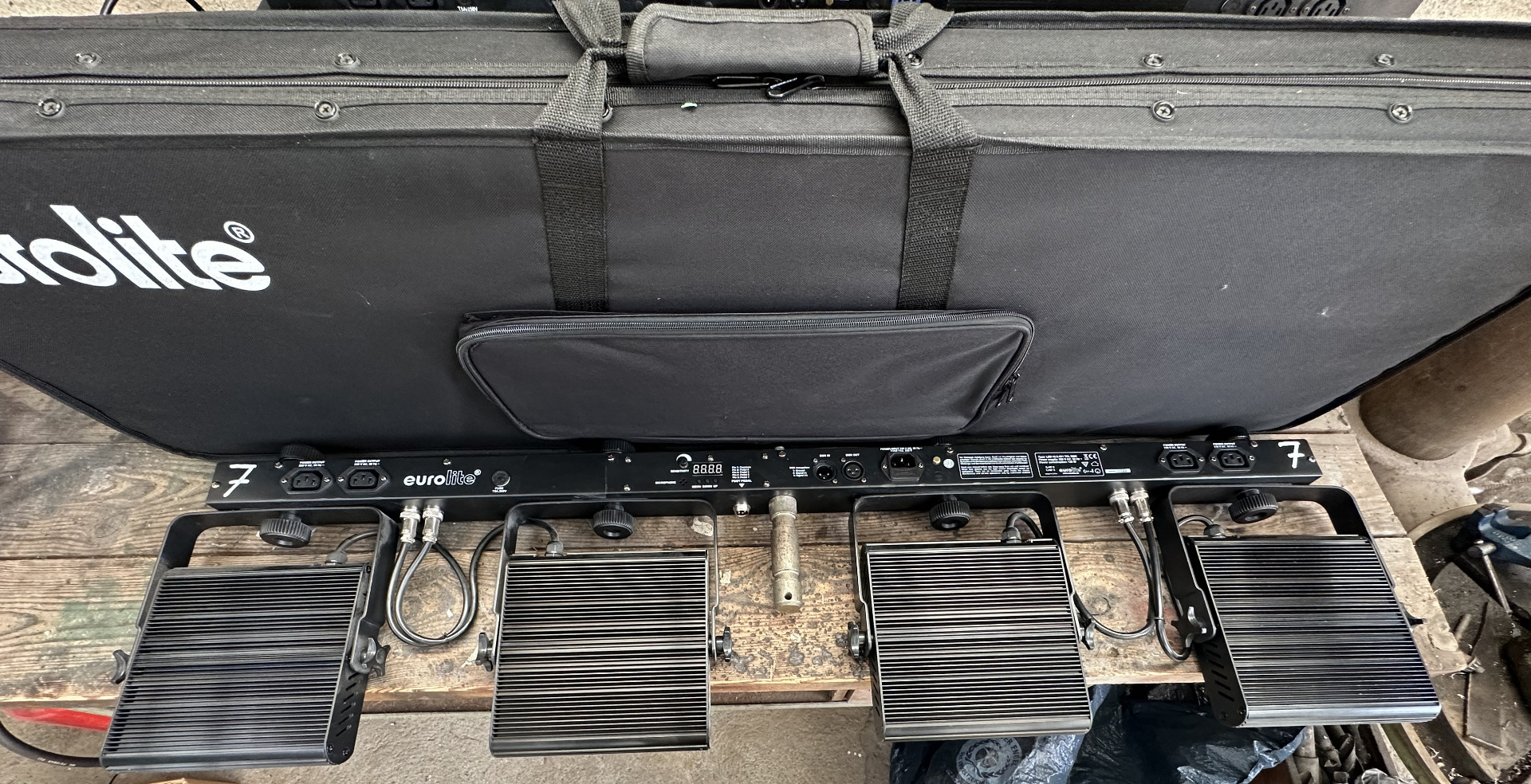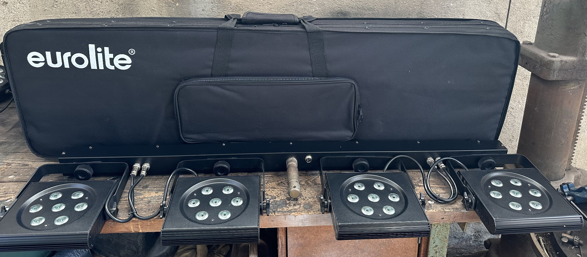 Bar mit 4 Spots mit je 7 x 3-W-3in1-LED (RGB) und Transporttasche