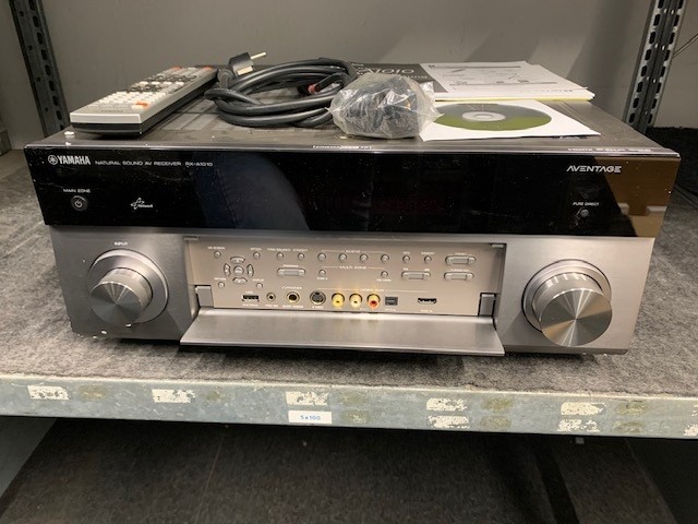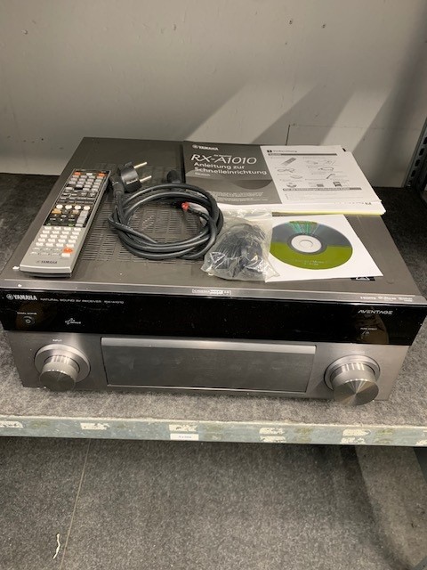1x Yamaha RX-A 1010 AV Receiver inkl. dem abgebildeten Zubehör.