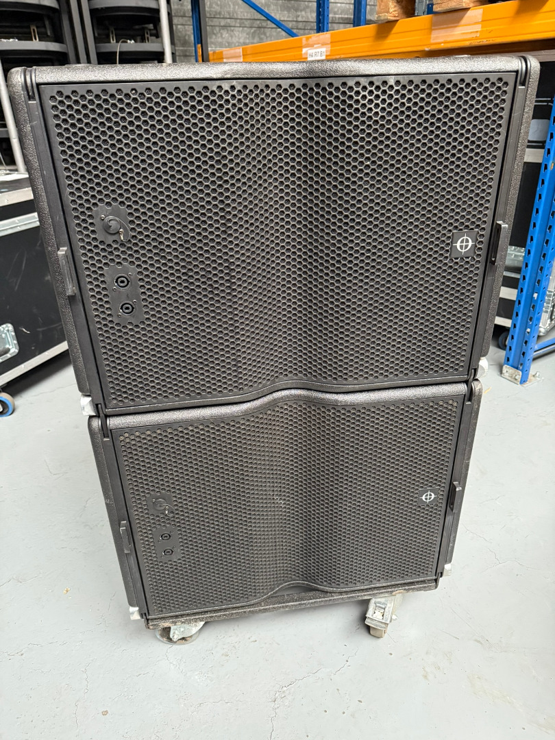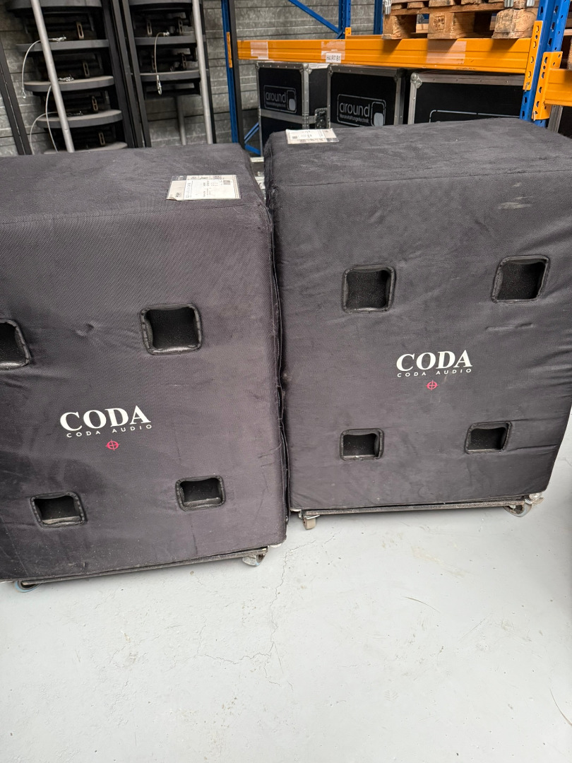 Zum Verkauf stehen 4x SCV-F 18"-Subwoofer mit Sensorsteuerung, inkl. Rollbrett und Haube.
