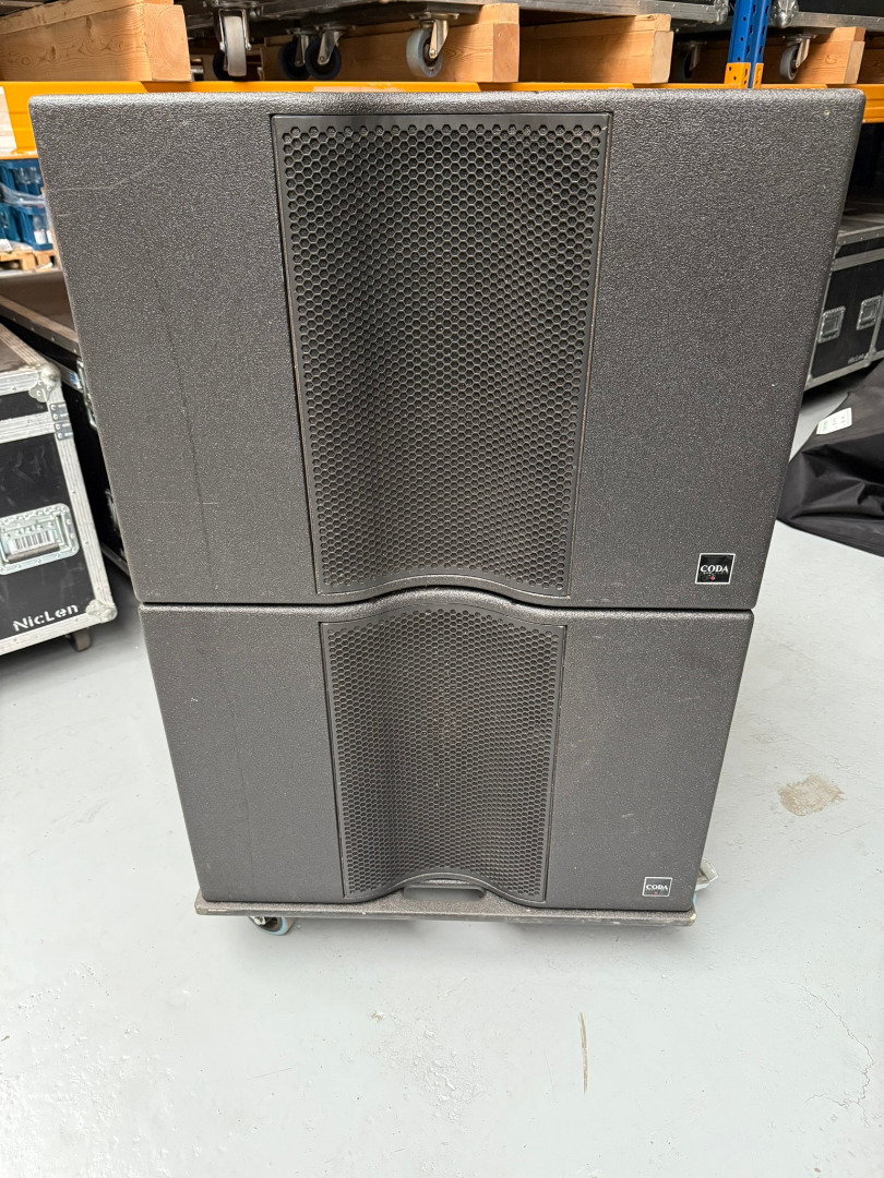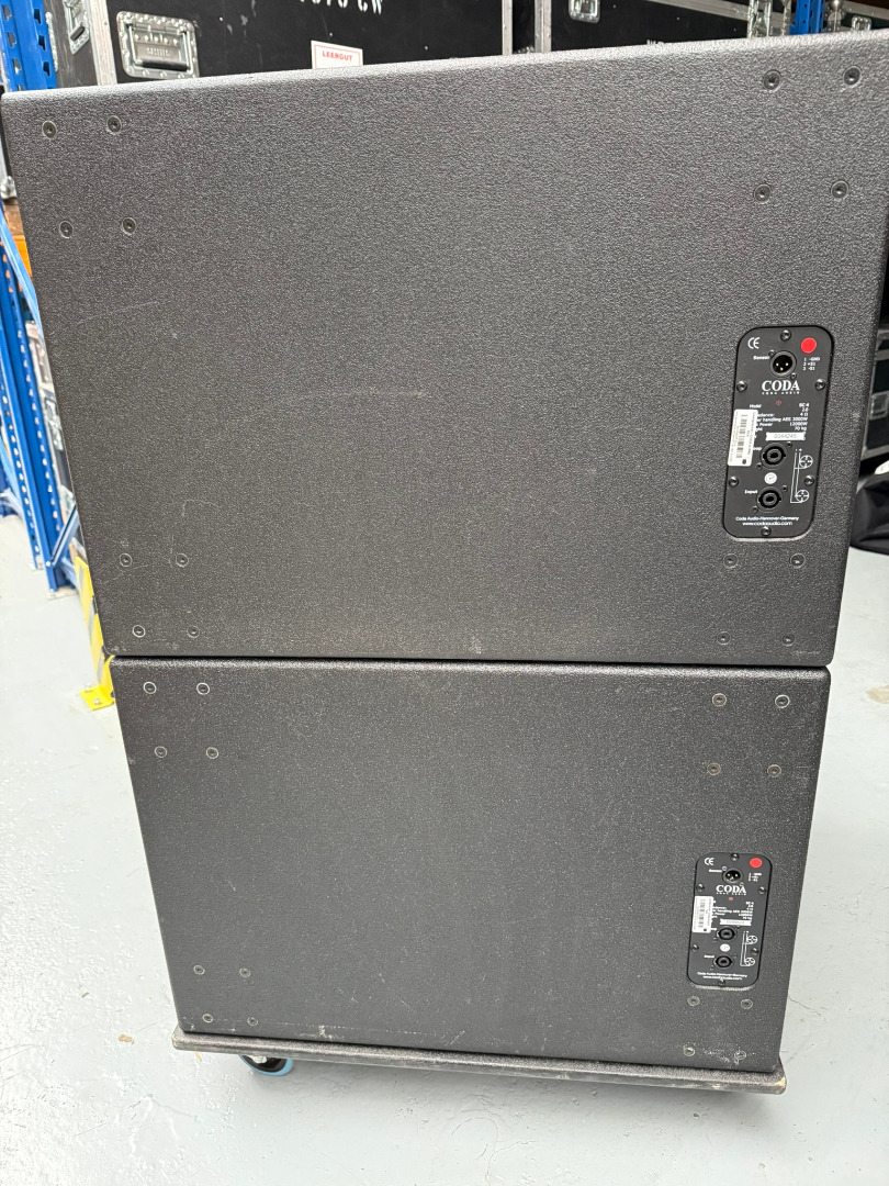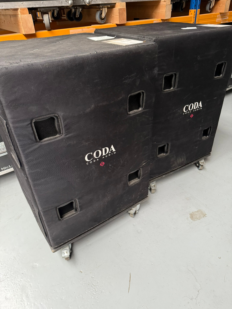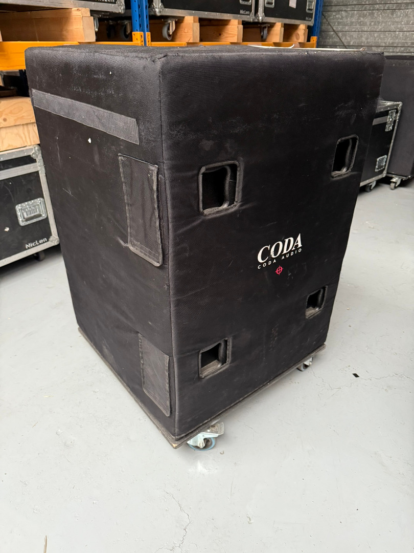 Zum Verkauf stehen 4x SC4 18"-Subwoofer mit Sensorsteuerung inkl. Rollbrett und Haube.