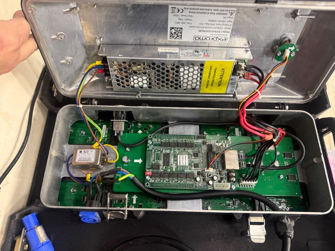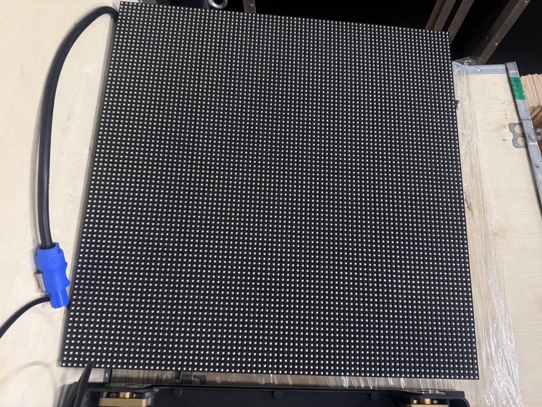 High-quality Danish Expromo P6 LED display panels, each 50x50 cm, complete with Nova receiving cards – total of 55 panels. The panels come from an indoor installation and are in excellent condition. A few units may have 1–3 minor pixel faults, not visible from normal viewing distance.