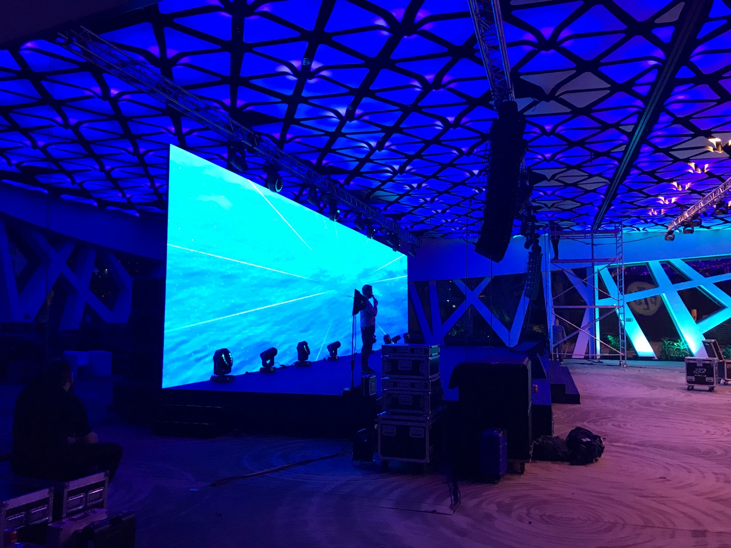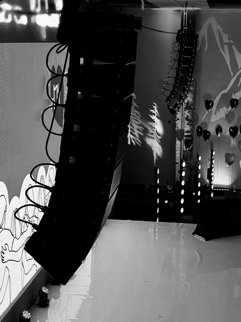 The system is in mint condition, used 90% of the time in hotels and concert halls. Only a few outdoor events have been performed. The equipment has been used by a professional team, regularly serviced, and is fully functional and visually appealing.