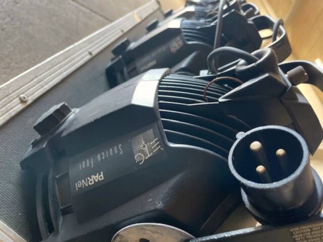 Set of 8 ETC PARNel 750W stage lights featuring zoom from 25º to 45º for flexible spot or flood applications. Includes PCE, hook, frame, barndoors, and a flightcase. Each set is packed for professional use and convenient transport.