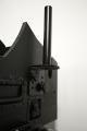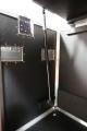 • Hinter dem Mischpult befindet sich eine Hundehütte, die mit Schnappschlössern verschlossen ist.