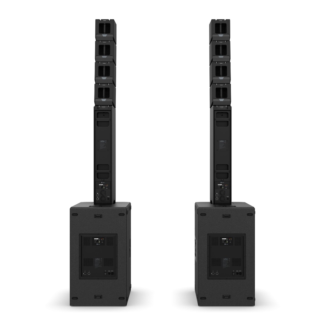 Stereo system as a combination of ground stack PA, column system and line array components