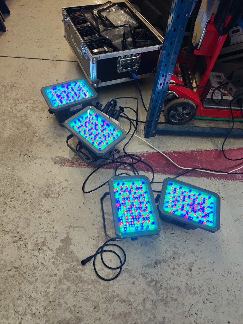 Inkl. Siebdruck Bodenstativen, Fernbedienung und DMX Adapter