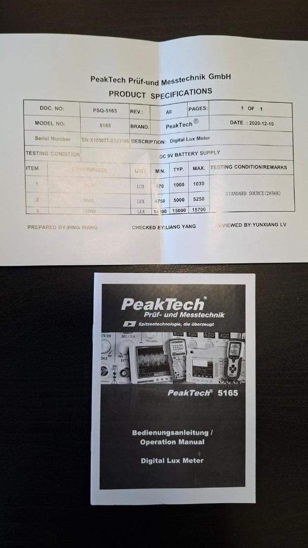 Lux: 0 - 200000, 1 Lux, ±4%