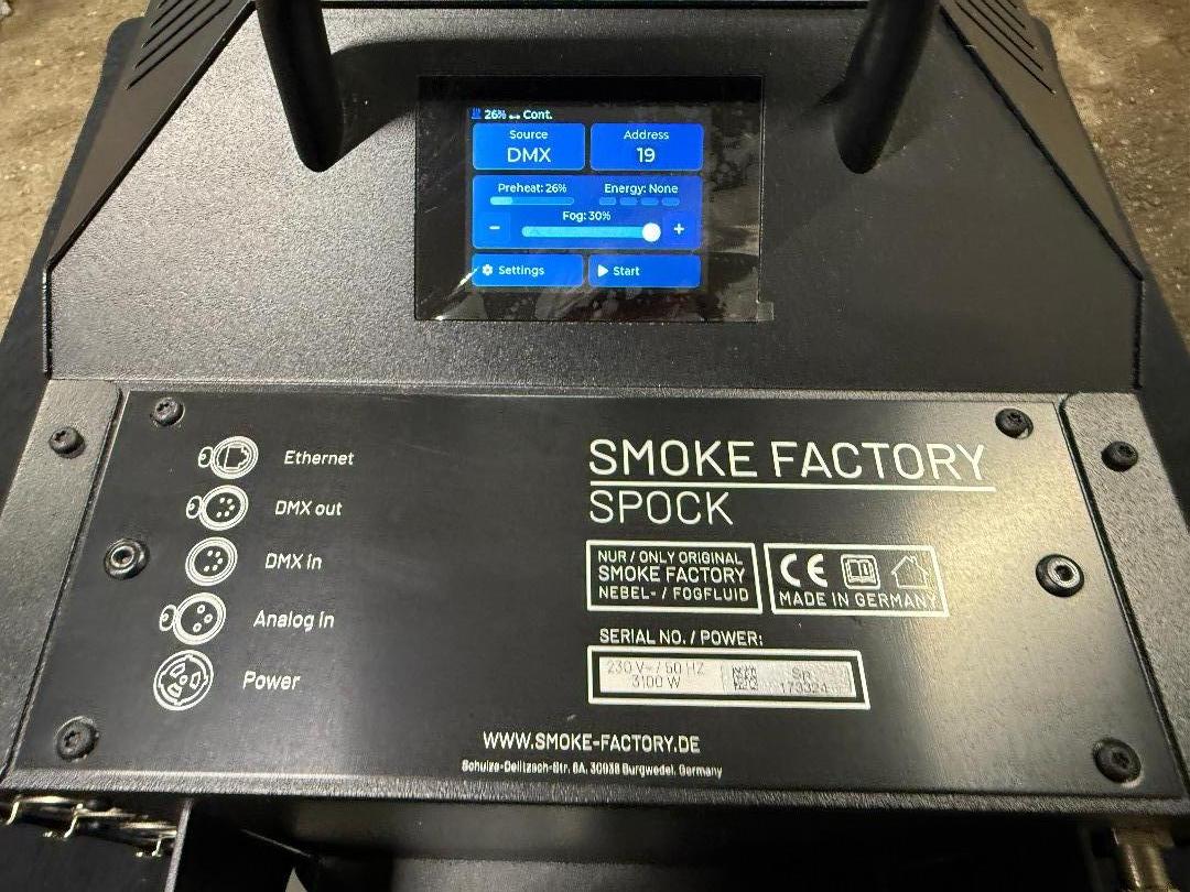 Die Smoke Factory SPOCK erzeugt Nebel in noch nie da gewesener Qualität. Durch neuste digitale Technik, lässt sich ein in allen Leistungsbereichen sauberes und gleichmäßiges Nebelbild erzeugen, wie es bisher noch nicht möglich war.
