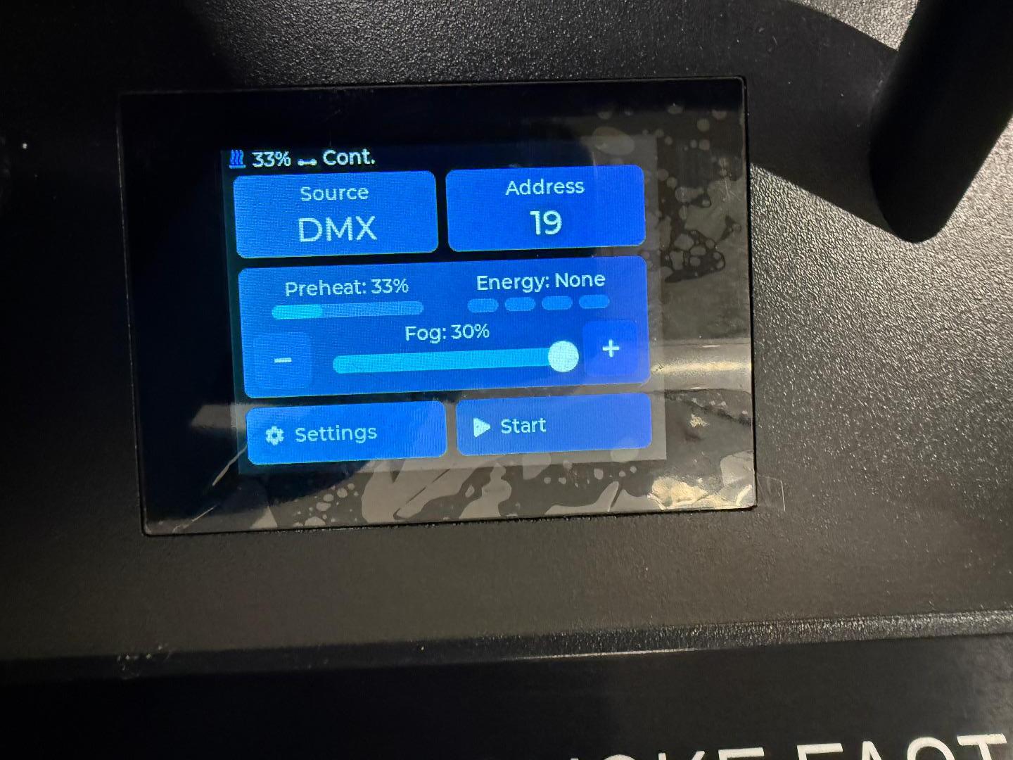 Als Einbau in unseren Bodennebler Carpet Crawler ist es beispielsweise sinnvoll, die Maschine im „Continuous-Mode“ oder „Flood-Mode“ niemals höher nebeln zu lassen, als sie nachheizen kann. So kann ein nicht abreißender Teppich aus Nebel produziert werden.