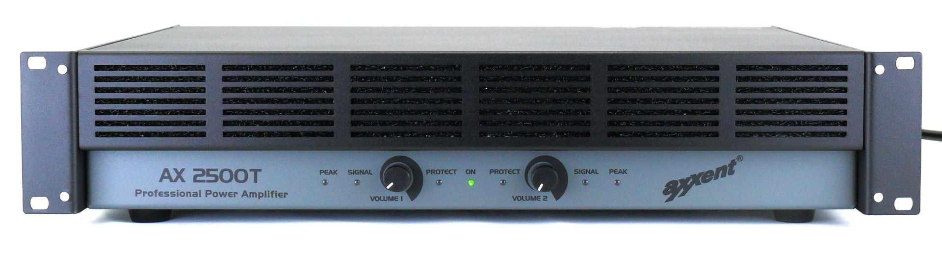 Installationsverstärker 2 HE, 2x500 W an 100 V mit Übertragerausgang (erdfreier Betrieb).