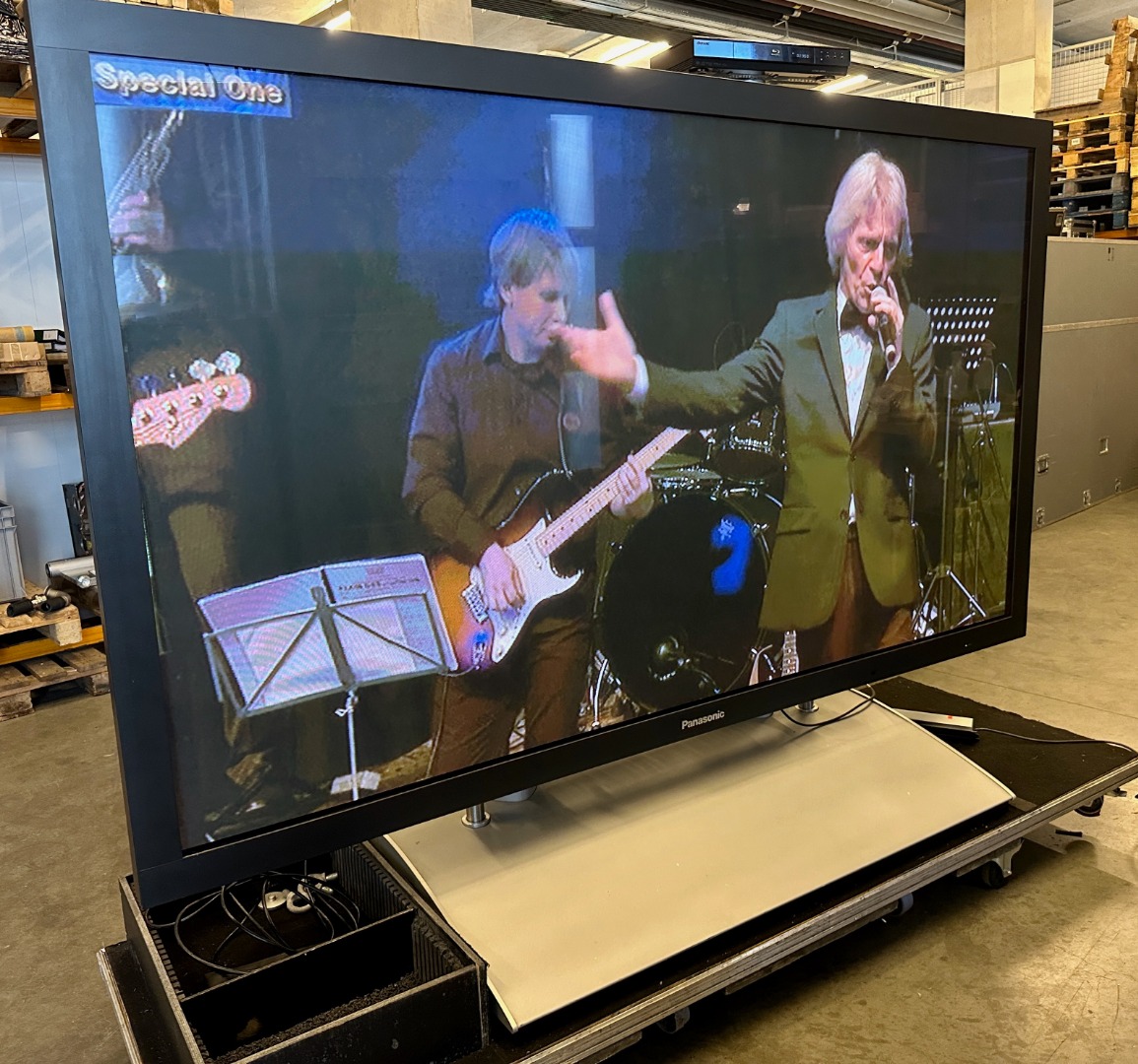 Wir verkaufen aus Überbestand einen Panasonic 103" inkl. Screenlifter und Case.