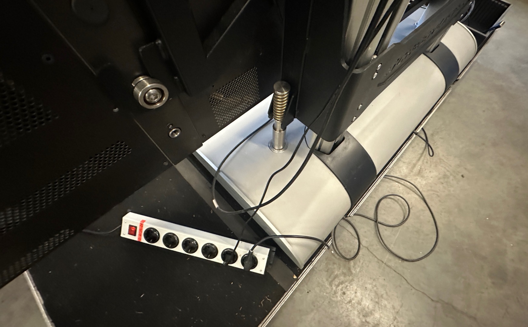- Optisch ansprechender Designständer mit integrierter Steuerung, Strom- und Signalkabelführung.