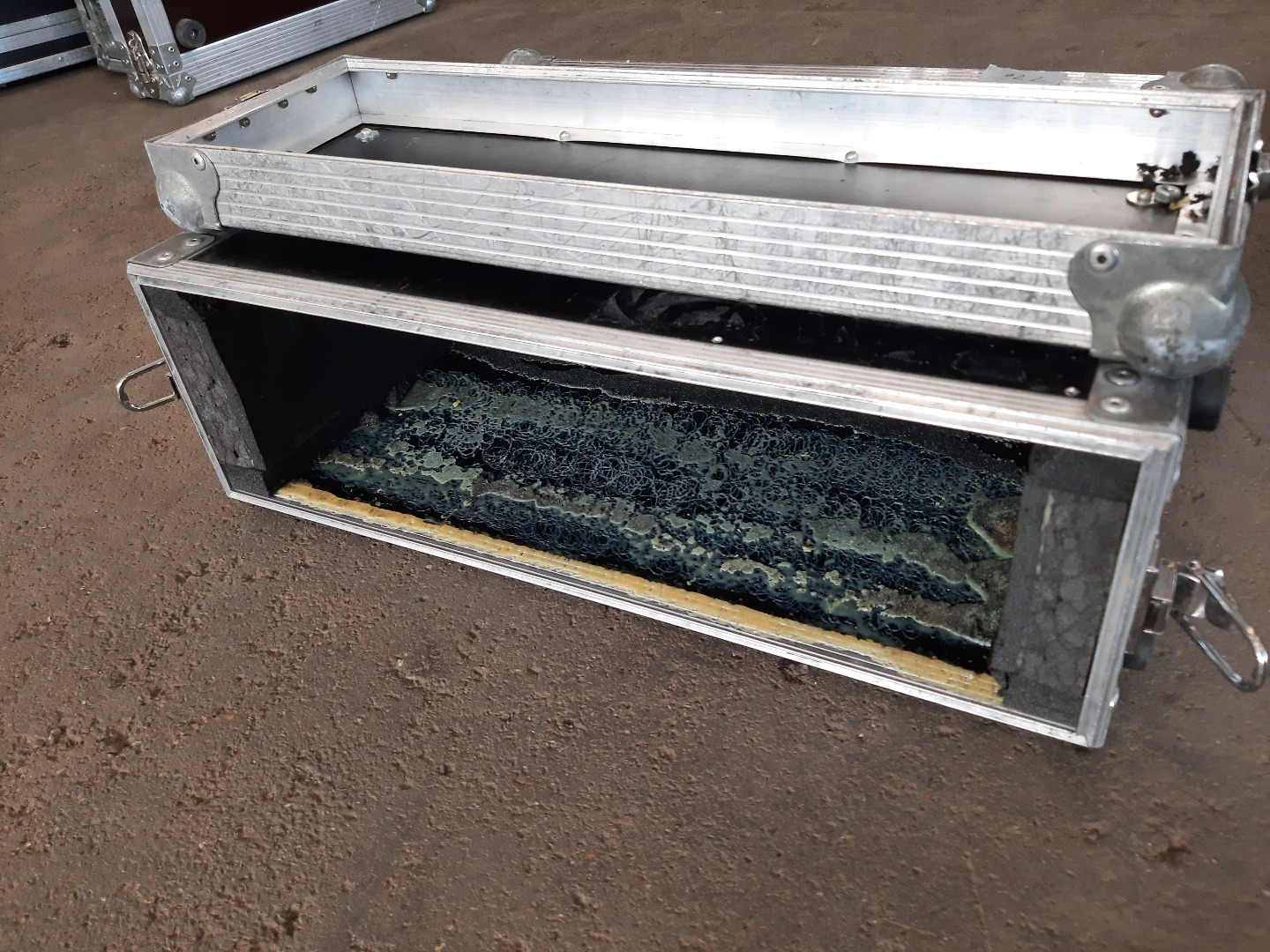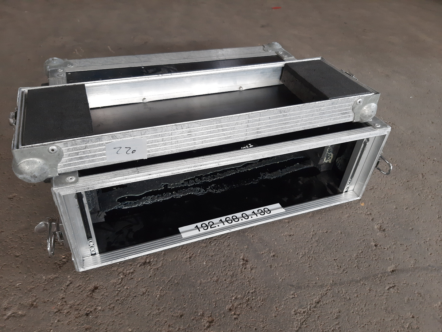 Zuletzt war hier ein Consumergerät ohne Rackwinkel drin deswegen gibt es noch eine Auskleidung mit Schaumstoff damit dieses Transportiert werden konnte.
