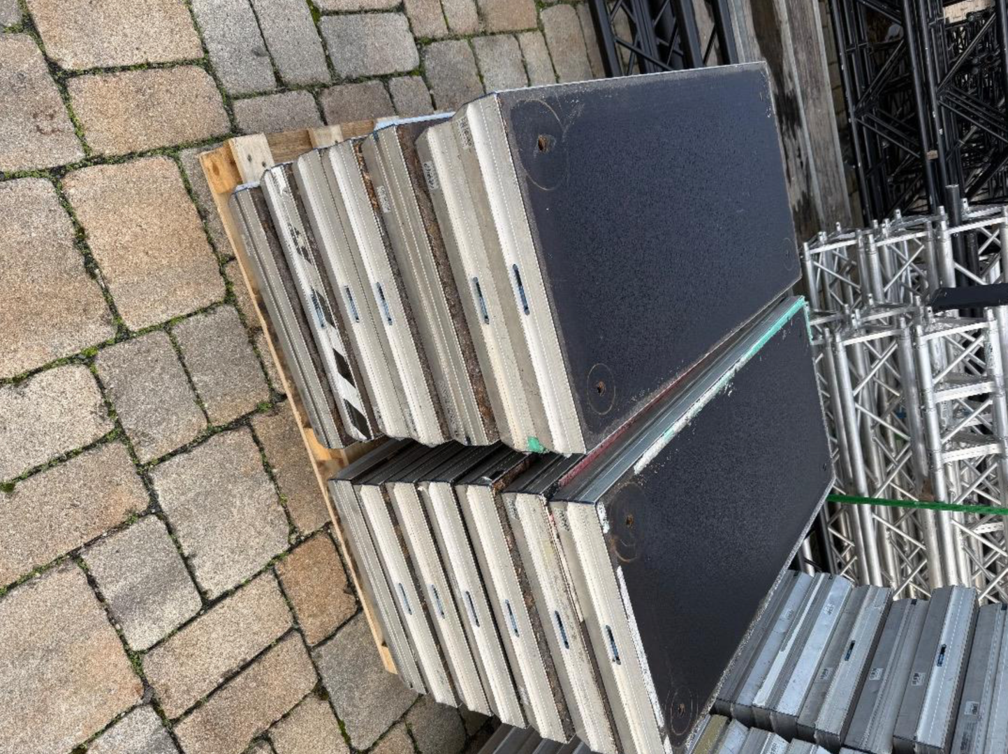 Wir erneuern unseren Bestand von Bühnenpodesten und haben kräftig aussortiert.
