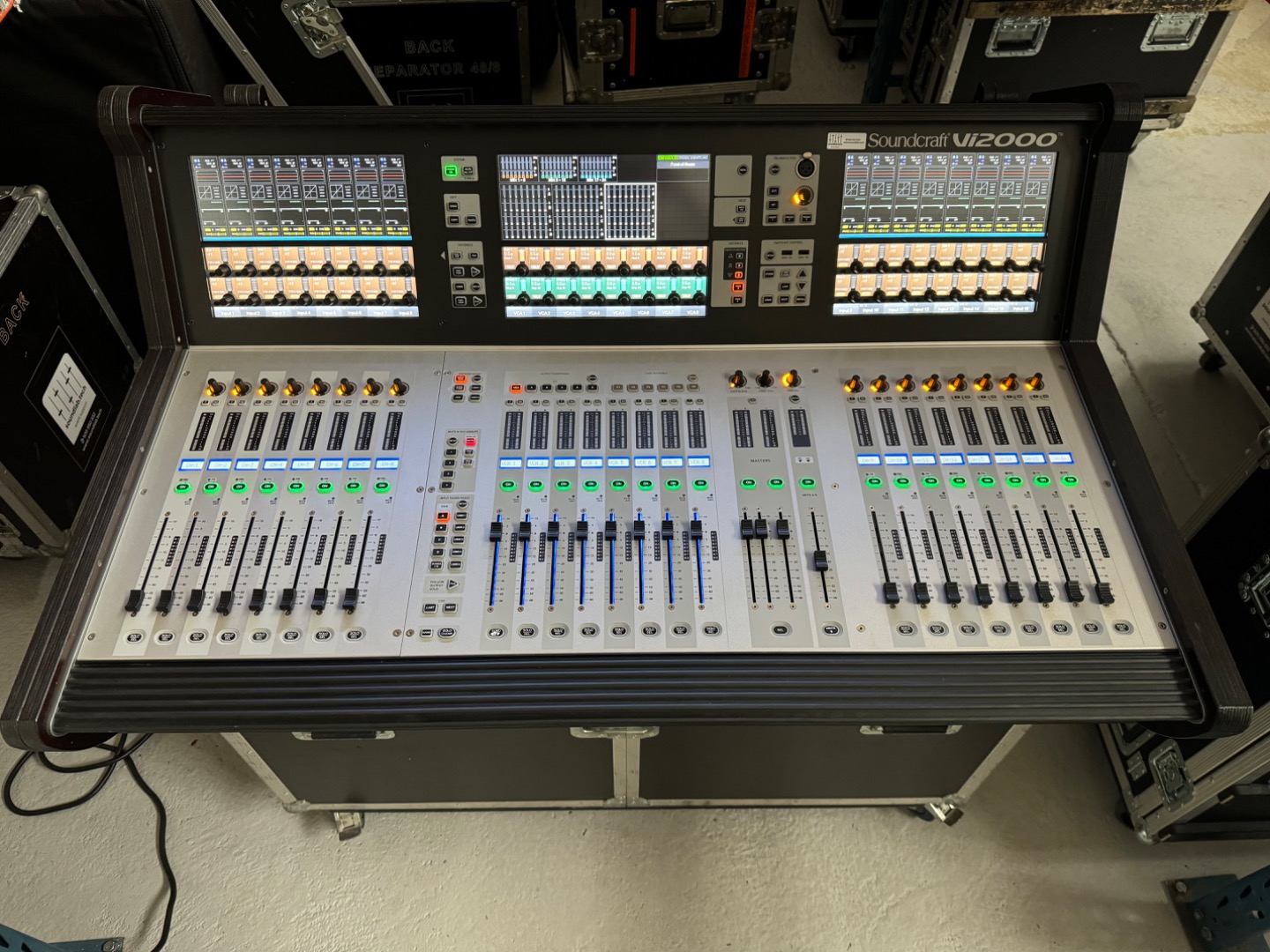 1x Soundcraft Vi2000 digital mixing console with dust cover, in flip case, Dante & Madi Card
