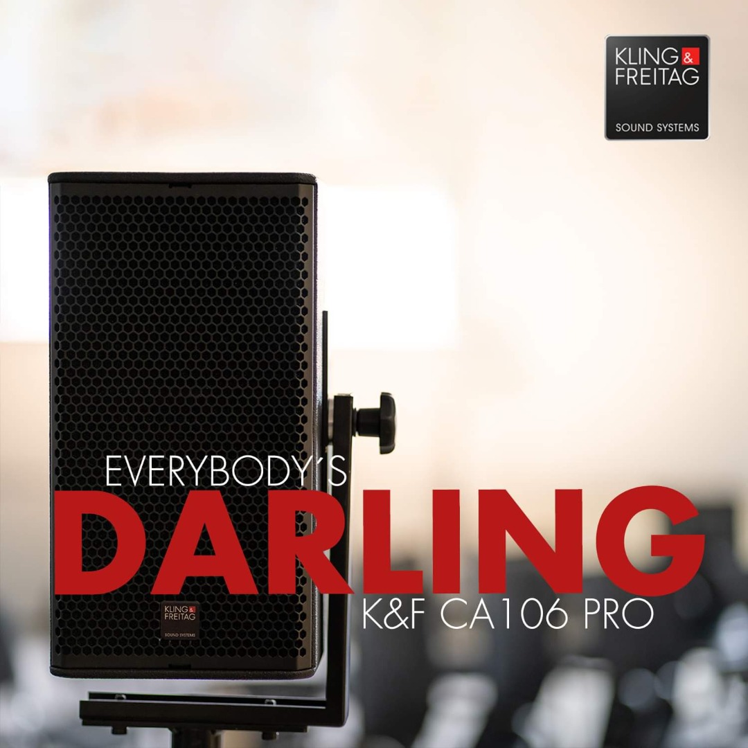 Ein Klassiker in zweiter Generation: Ganz im Gegensatz zum sonst eher praktizierten „Trick“, altbekannte Inhalte in einer neue Verpackung zu präsentieren, macht man es bei Kling & Freitag genau umgekehrt: Die bewährte „Verpackung“ – Gehäuse und Mechanik – bleiben unverändert, wurden aber mit neuer, komplett überarbeiteter Technik ausgestattet. Kompakte Beschallungslautsprecher werden im Verleih und bei Installation in vielfältigster Weise benötigt. Für kleine Bühnen mit Subwoofer, als Fill-Systeme in Seitenbereichen und an der Bühnenkante oder auch als Monitore auf der Bühne. Im Innern der CA 106 Pro wurden dagegen deutlich mehr Veränderungen vorgenommen: Beide Treiber sind neu und jetzt ganz zeitgemäß mit Neodym-Magneten ausgestattet. Folglich wurde auch die Weiche komplett neu designt und mit einer neuen Schutzschaltung ausgestattet, die einen sicheren Schutz – vor allem für den Hochtöner – bietet und sich nach dem Abklingen einer Überlastung automatisch zurücksetzt. Eine kleine, aber praktische Änderung findet sich auch noch auf der Rückseite: Über einen versenkten Schiebeschalter kann ausgewählt werden, ob die Box ihr Signal von den Pins 1± oder 2± der Speakon-Buchsen erhält. Man kann die CA 106 Pro so leicht an die Pin-Belegung eines Subwoofers anpassen, wenn beide zusammen über eine vieradrige Zuleitung versorgt werden und, was vermutlich in der Praxis noch wichtiger ist, man kann eine ganze Reihe von Boxen durchverkabeln, bei denen sich dann auswählen lässt, ob sie das Signal aus dem einen oder dem anderen Feed nehmen. m Gegensatz zu vielen anderen aktuellen Lautsprechermodellen kann die CA 106 Pro auch ohne eine spezielle Systemendstufe betrieben werden, da die Box an sich schon einen ausgeglichenen Frequenzgang hat und über alle erforderlichen Schutzschaltungen verfügt. Mit der CA 106 Pro geht einer der am weitesten verbreiteten kompakten Beschallungslautsprecher nach mehr als 20 Jahren in die zweite Generation. Über zwei Jahrzehnte in einem schnelllebigen Markt sprechen für sich.