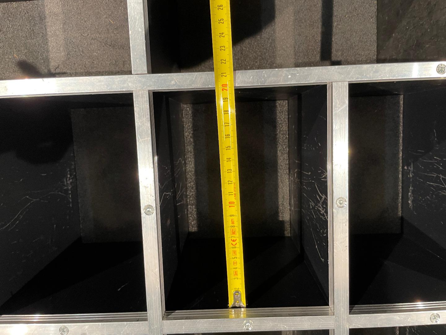 Ursprünglich gebaut für 12 AT10 Mini PARs mit Manfrotto Stud und 4 Zubehör Fächern.