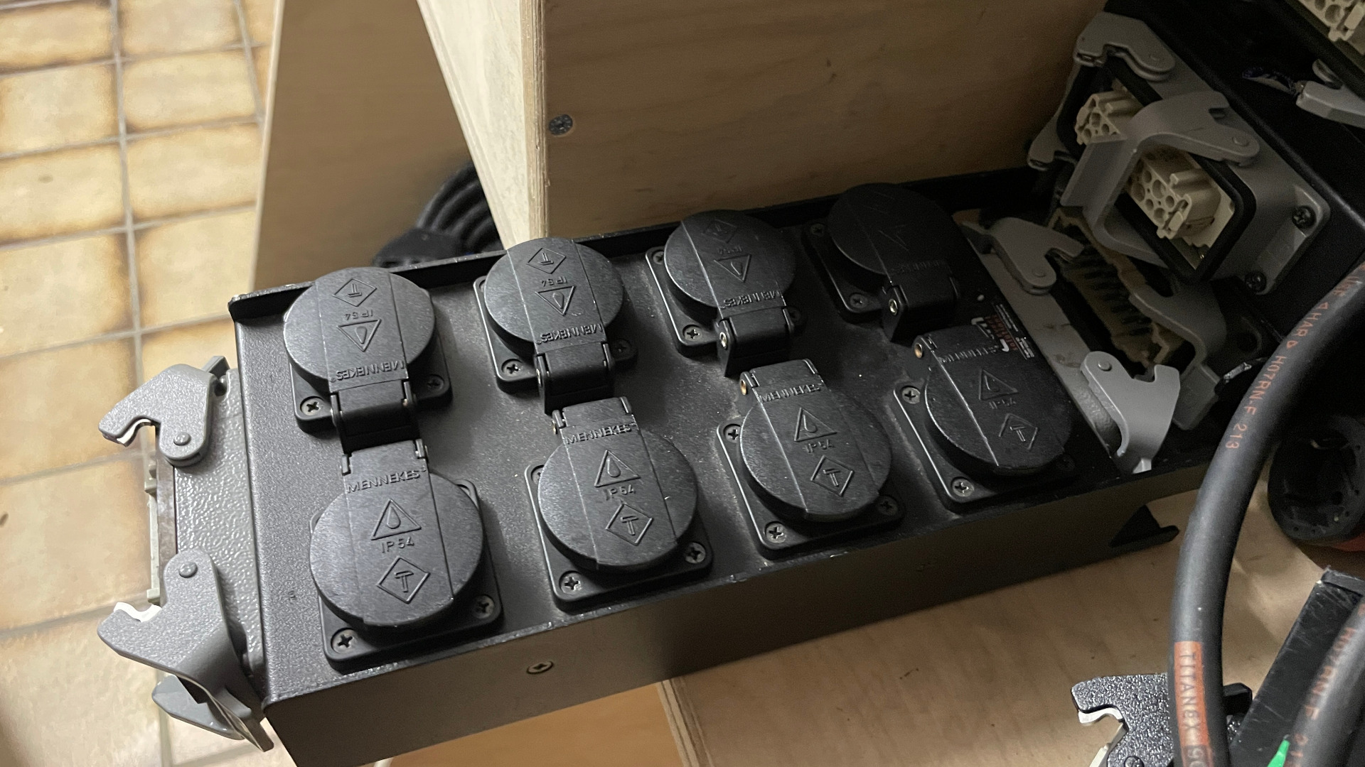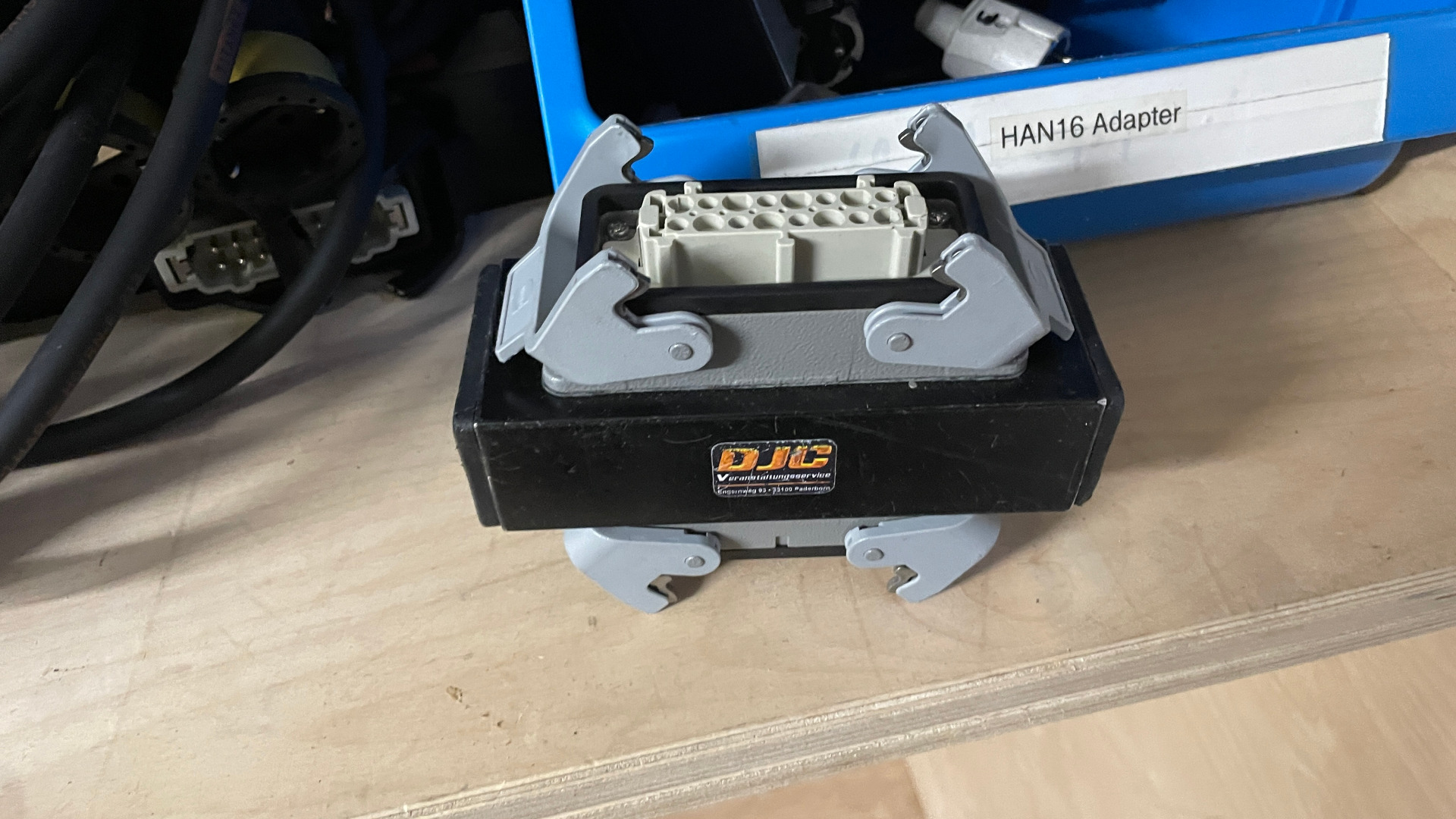 Das Case ist modifiziert, damit der HP gesteckt bleiben kann. Die Eingänge sind an ca. 100cm langen HAN16 Kabeln.