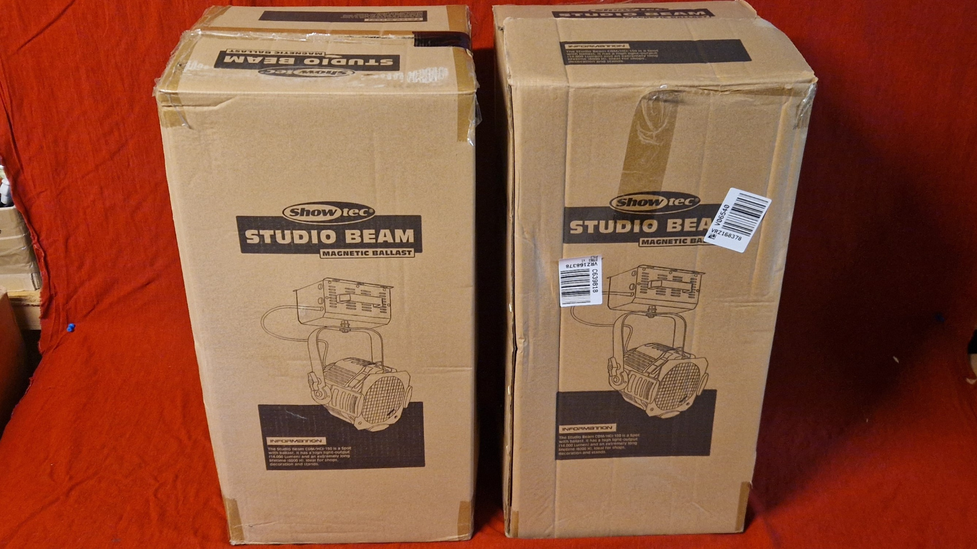 Ihr könnt hier ein echt tolles Schnäppchen schießen. Nur nochmal um sicher zu gehen, ich biete hier zwei schwarze Scheinwerfer, Showtec Studio Beam 575 MSR zum Verkauf an. Die Scheinwerfer sind neu und unbenutzt. Ich habe die Kartons nur geöffnet um Bilder zu machen und den Zustand festzustellen. Die MWST kann nicht separat ausgewiesen werden.