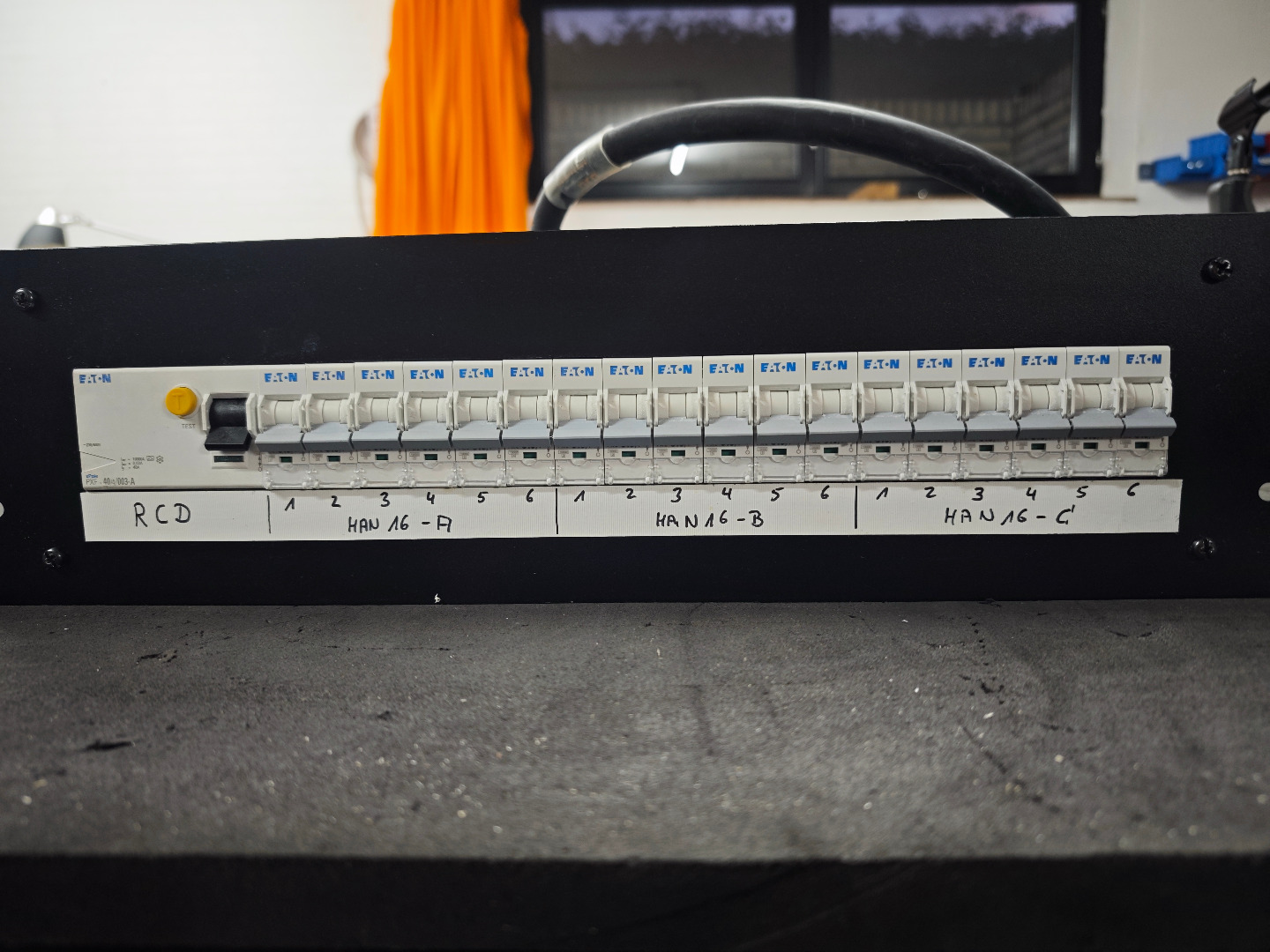 Verkauft wird ein Unterverteiler 32A IN auf 4 x HAN16 OUT. A+B+C belegt; D nicht angeschlossen. Eigenbau.