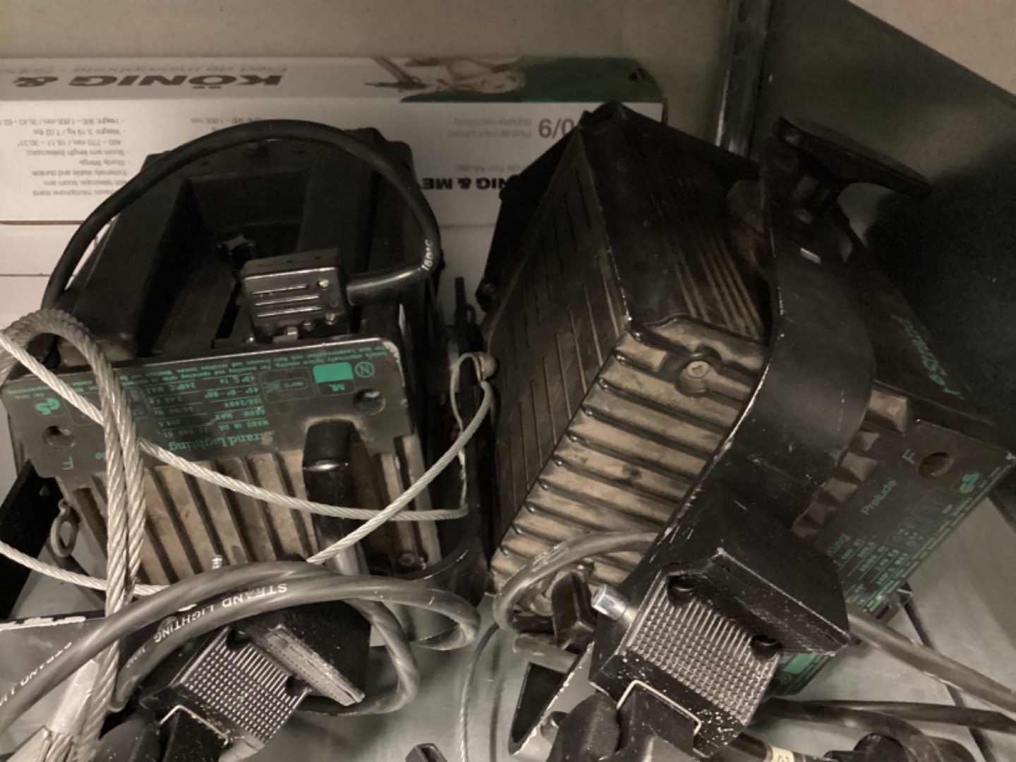 Strand Stufenlinsen 650W. Die Lampen werden mit Torblende, aber ohne Manfrotto Clamp verkauft. Das Material ist 2022 DGUV geprüft und entsprechend gekennzeichnet worden.