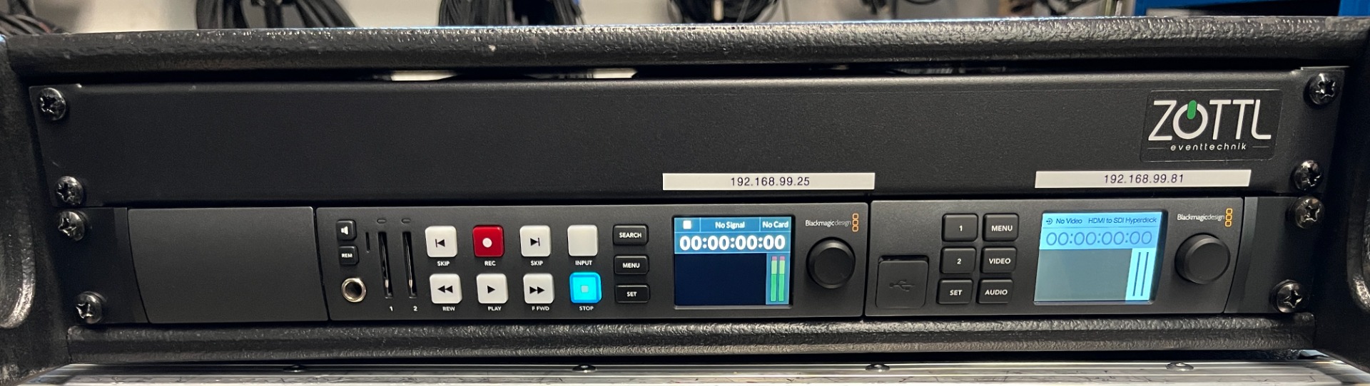 Blackmagic Design HyperDeck Studio HD Plus inklusive Teranex Mini HDMI to SDI 12G, Teranex Mini Smart Panel und Universal Rack Shelf zu verkaufen.