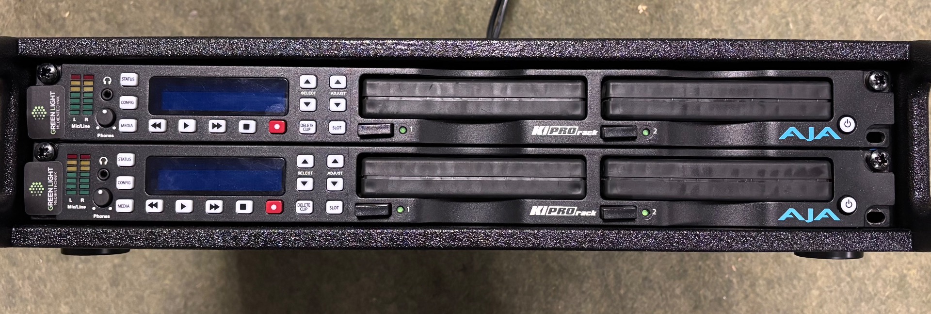 Verkauft werden 2 Stk Aja KI Pro Rack mit jeweils 2x 500GB KI STOR Festplatte.