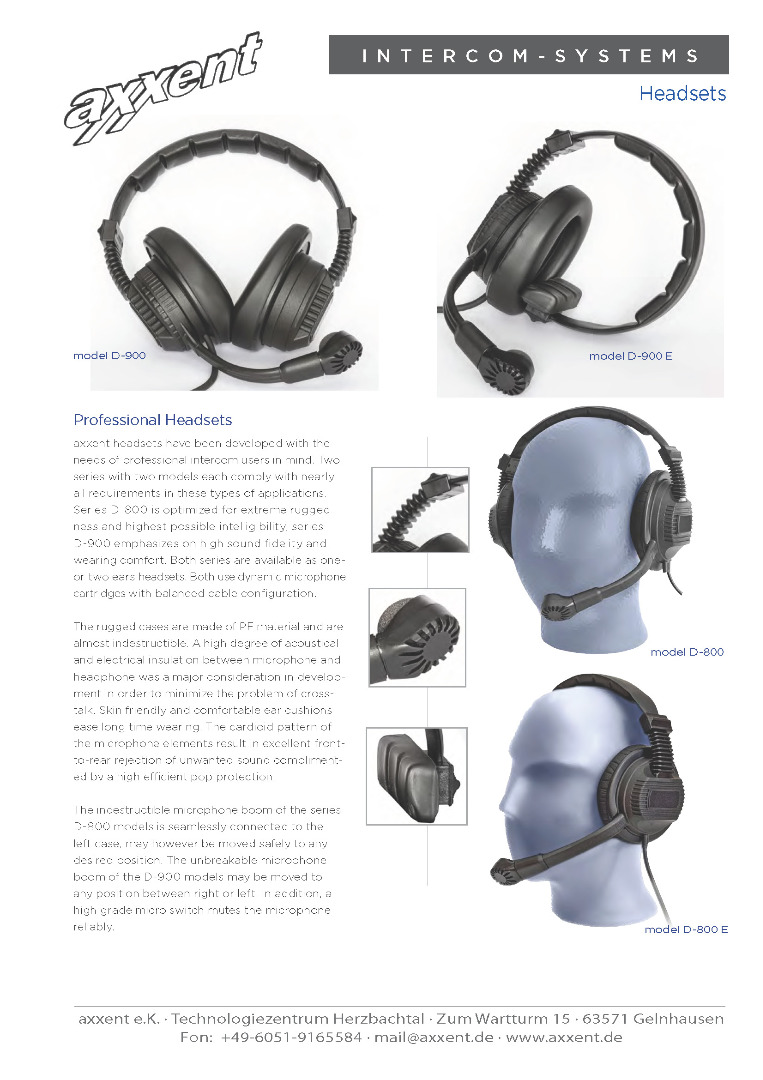 Extrem robuste Hör-Sprechgarnitur mit dynamischem Mikrofon und zwei Ohrmuscheln aus deutscher Produktion. Die üblichen 4-pol XLR-F. Demogeräte in 1A-Zustand - wie neu. Neupreis Liste netto € 198,-- Volle Garantie 3 Jahre. Details unter www.axxent.de Verkauf nur an Gewerbetreibende. Preis netto zzgl. Mwst.