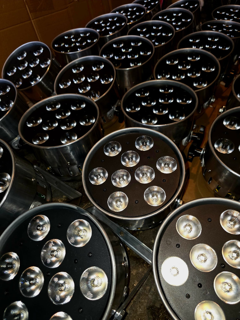- PAR-Scheinwerfer mit 9 x 10-W-6in1-LED und RGBAW+UV-Farbmischung