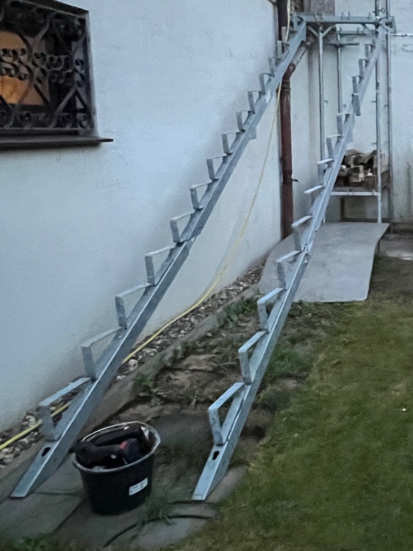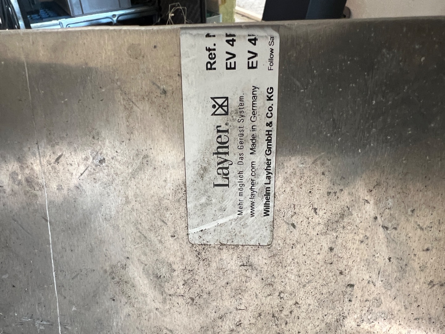 wir bieten eine Layher Treppe mit verzinktem Stahl Rahmen und Alu Riffelblech Stufen.