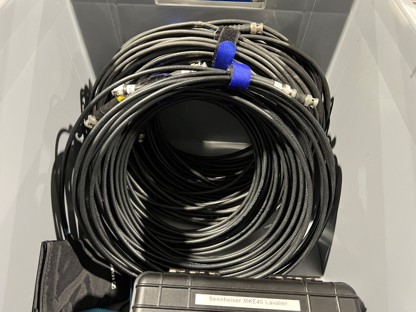 wir bieten ein paar Sennheiser Antennenkabel mit blauem Klettkabelbinder: