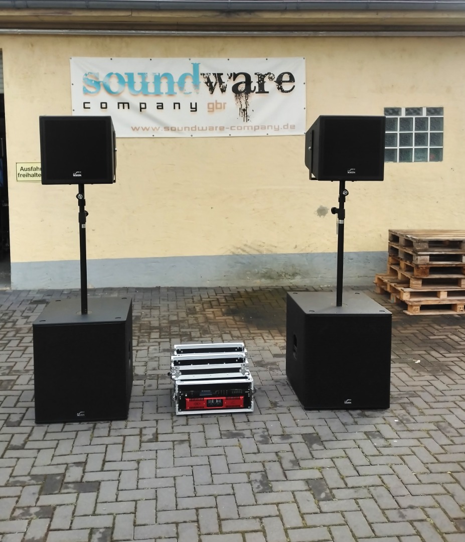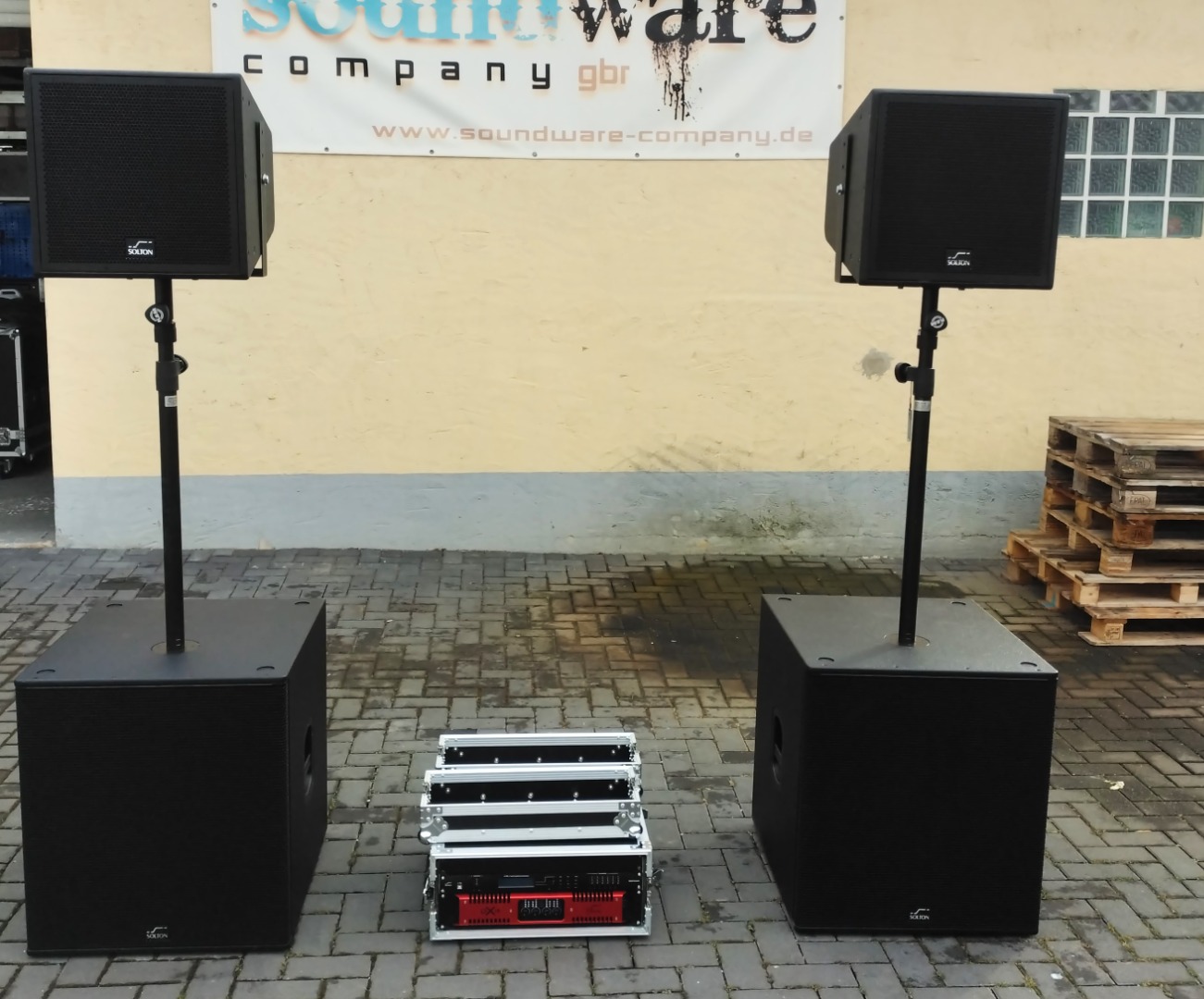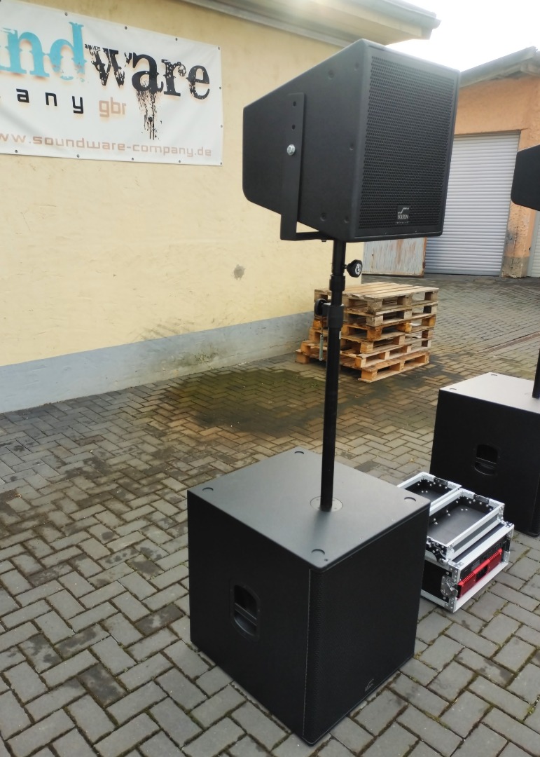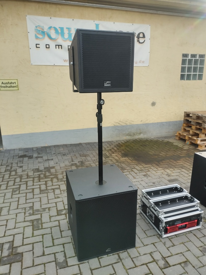 Zum Verkauf steht eine große Solton PA. Das Set stammt aus unserem Demobestand und wird wie abgebildet inkl. Amps, Kabel und Destanzstangen angeboten.