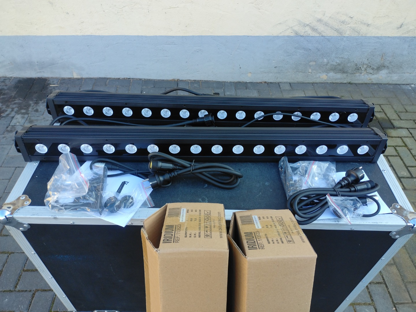 Mit der Arc Bar MKII 16x8W RGBW hat IRIDIUM die neueste Version seiner Outdoor-Bar (IP65 Schutzklasse) im Angebot. Die 16x 8W starken RGBW-LEDs lassen sich in insgesamt acht Segmenten separat ansteuern und erzeugen einen Abstrahlwinkel von 30°. Neben dem Betrieb im Master/Slave-Verbund stehen sieben DMX-Modi für die Kommunikation über DMX (3-pol IN/OUT) zur Verfügung.