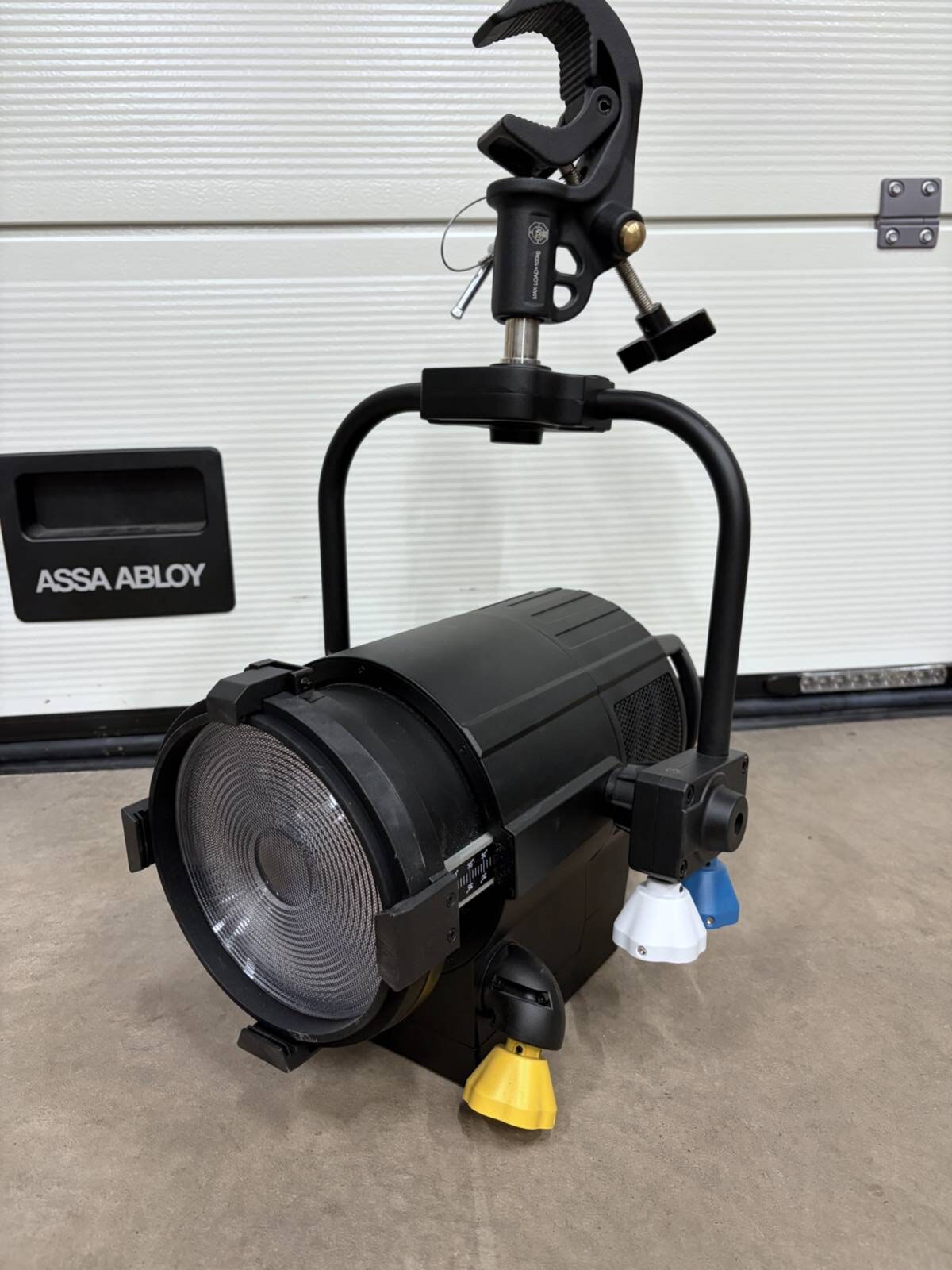 Powerful LED Fresnel lamp offering variable-white light from 2,700K to 5,600K, ideal for high-quality white rendering, especially in TV studios, galleries, and virtual productions. Features include a 250W LED source with high CRI and TLCI ratings, manual zoom from 17° to 64°, precise focusing, 8-leaf barndoor, intuitive rotatory knob interface, stand-alone settings, PowerCon True and XLR connections for flexible setup.