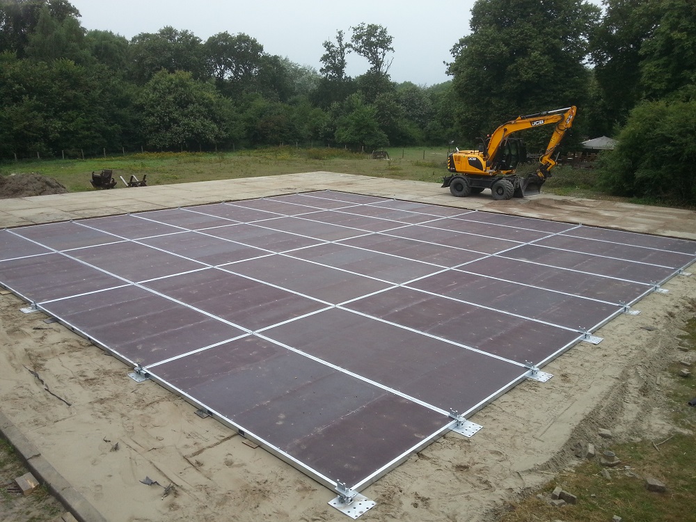 mit dem feuerverzinkten Stahlrahmen ideal für Zelt- und Bühnenanwendungen. Dank des durchdachten Systems lässt sich der Boden von zwei Personen schnell und einfach montieren.