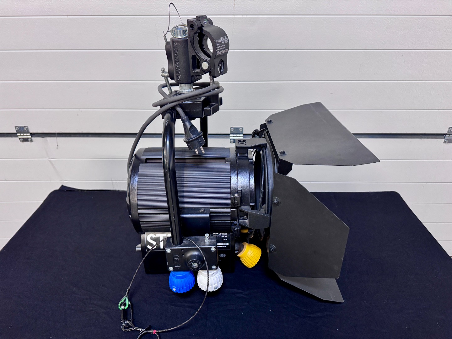 Der Industriestandard unter den 1kW-Stufenlinsen. Dieser Arri ST1 in der eleganten schwarzen Edition ist die P.O.-Version (Pole Operated), wodurch sich Fokus, Pan und Tilt bequem per Stange vom Boden aus justieren lassen. Ein extrem robuster, zuverlässiger Scheinwerfer mit erstklassiger Lichtcharakteristik, ideal für Theater, TV-Studios oder Festinstallationen.