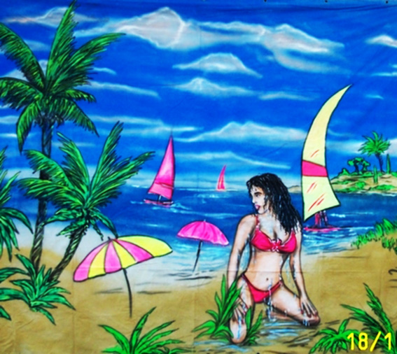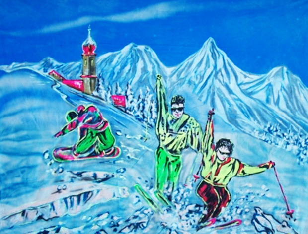 Motive: "Aprés Ski", "Mallorca-Beach Party", "70er/80er Crazy-Plane", "70er/80er 99 Luftballons", Maße: 3x4x0,001 ; Gewicht: 5,00 kg, schwer entflammbar, inkl. Spanngummis, geöst und gesäumt, zzgl. UV-Licht