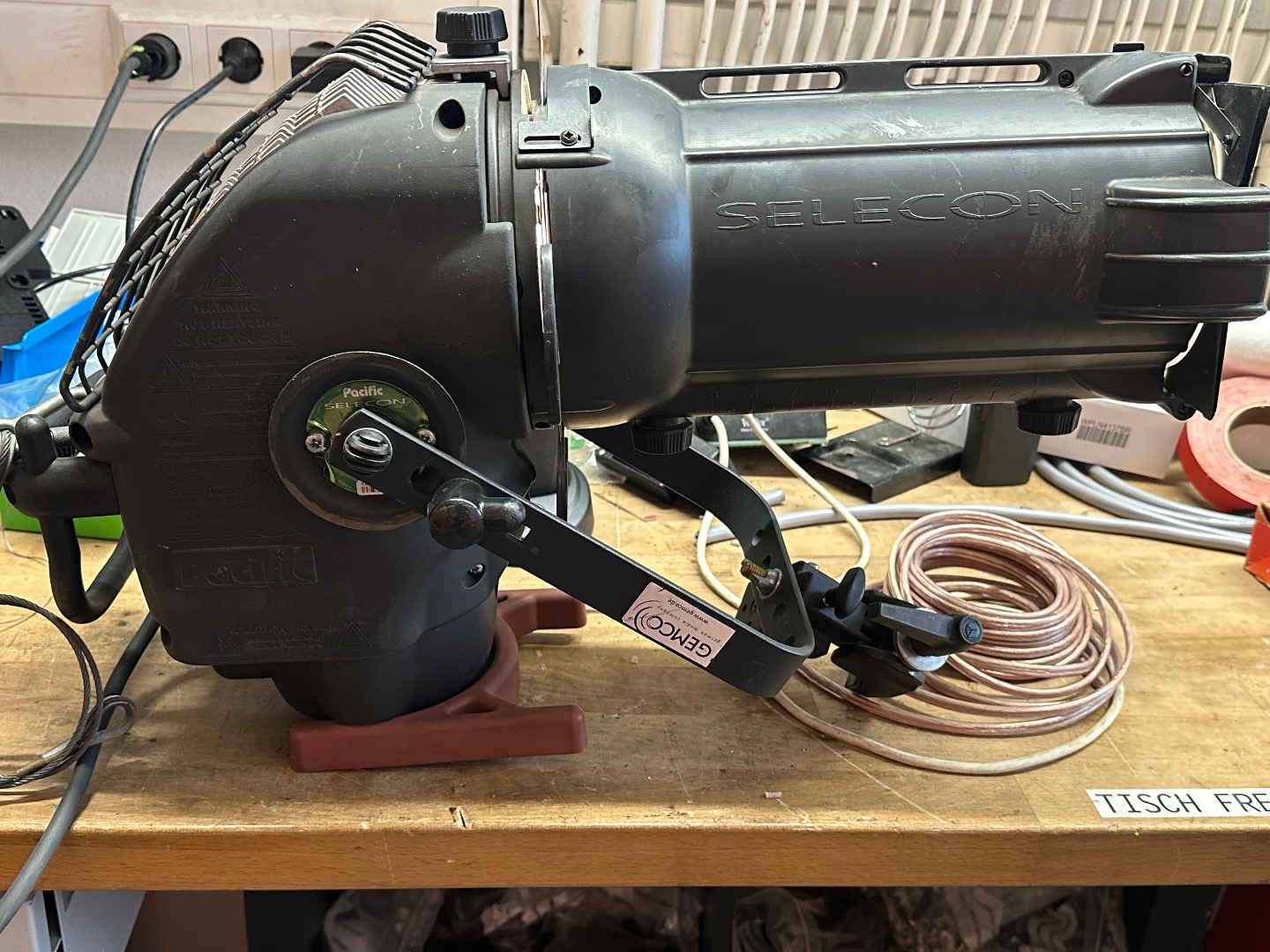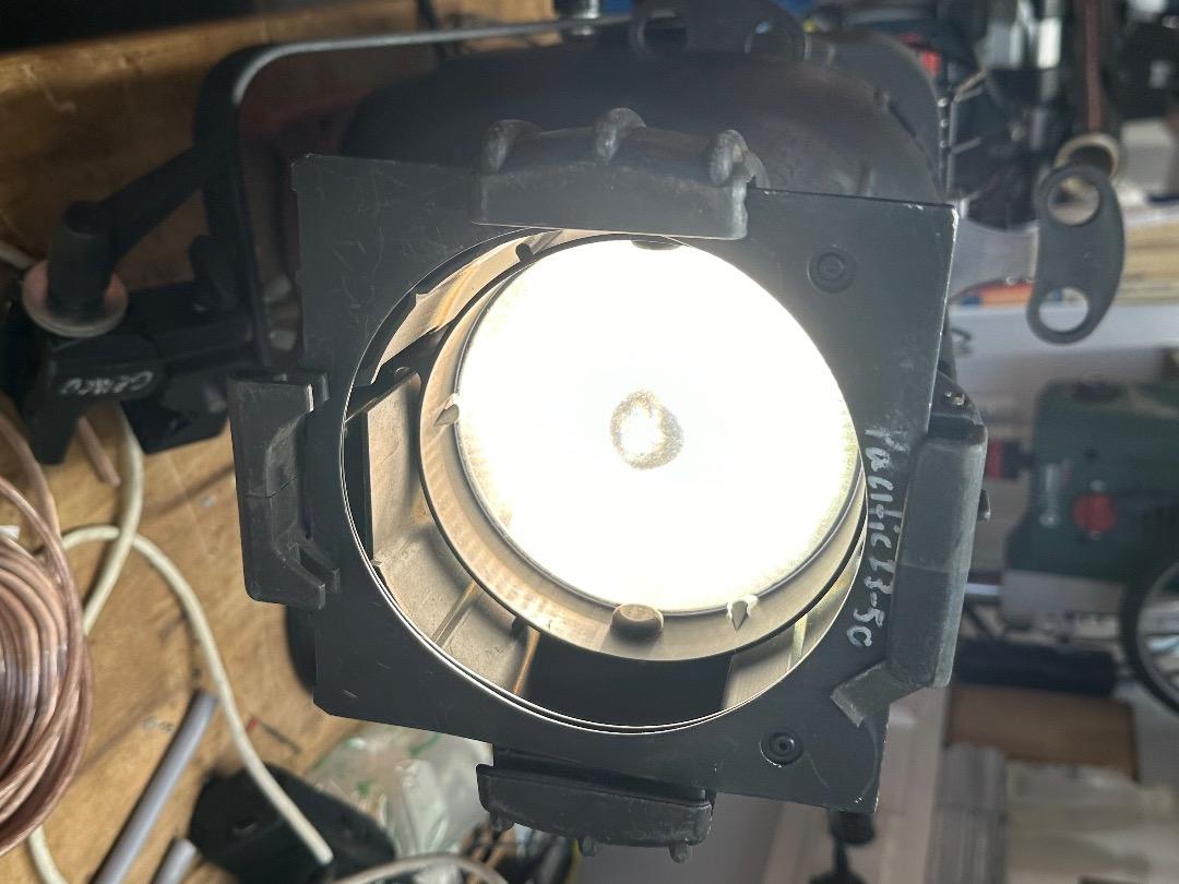 Im Schweinwerfer ist ein 1000 Watt Leuchtmittel verbaut kann direkt an 230 Volt Betrieben werden mit oder Ohne Dimmer. Verkauf ohne Zubehör wie Schelle oder Safty. Ist nicht enthalten. Verkaufszustand siehe Bild.