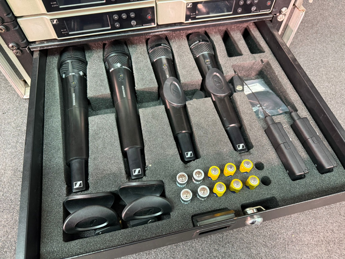Zum Verkauf steht ein 4-fach Sennheiser EW D Funkenset mit viel Zubehör. Die Funken waren Spare und selten benutzt - Alter circa 2 Jahre. Es sind noch Schutzfolien auf den Sendern und Empfängern drauf.