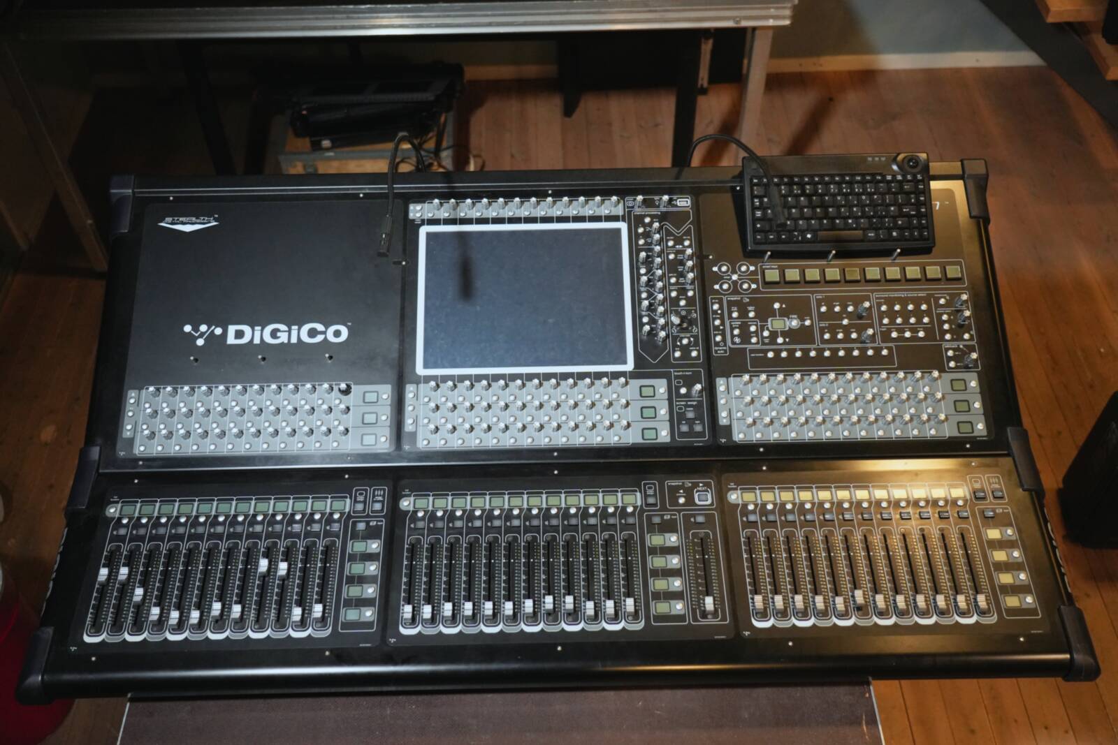 Mixing console equipped with an HMA adapter cable, ideal for professional sound applications and live event production, offering reliable performance and flexible connectivity.