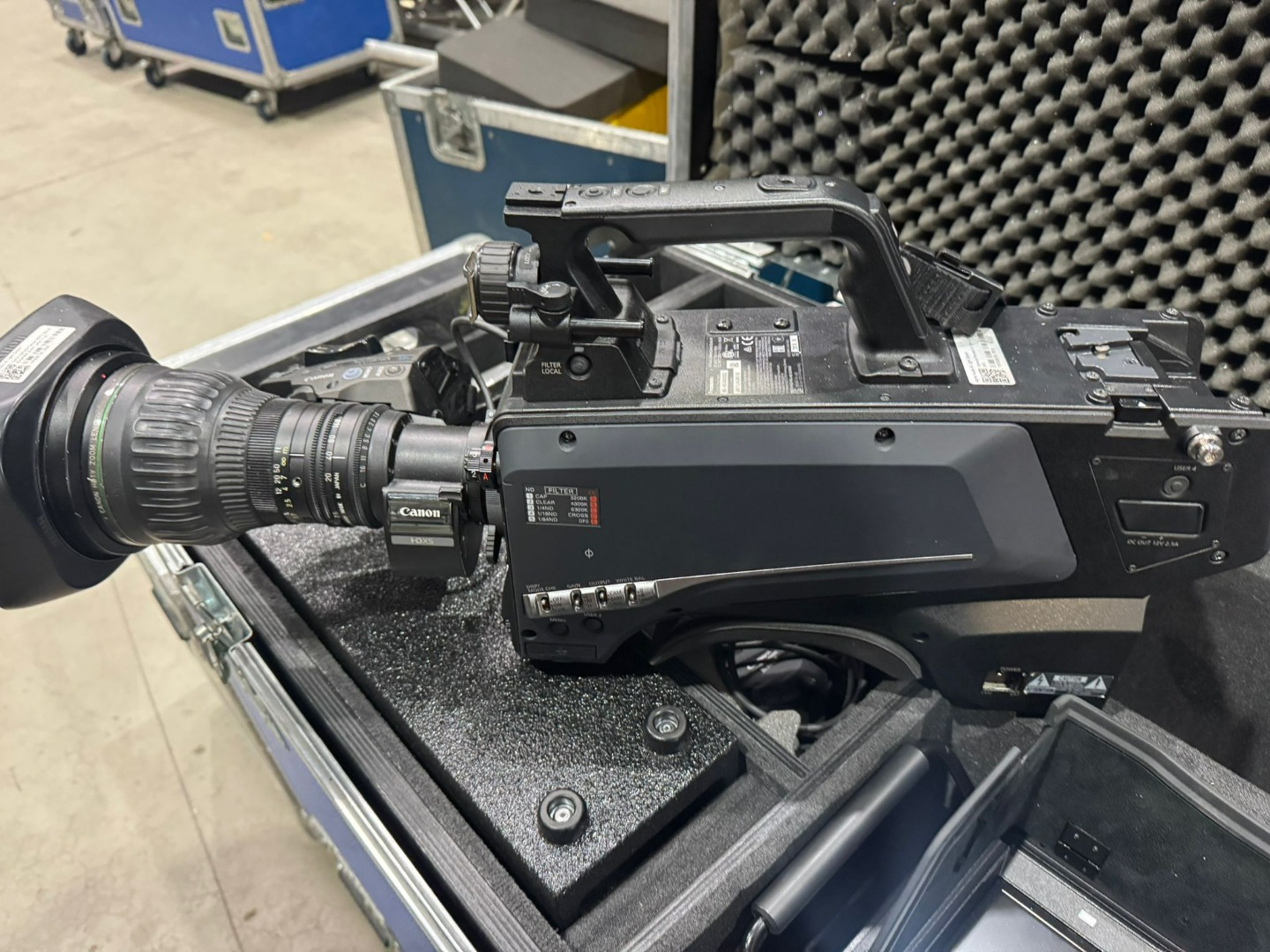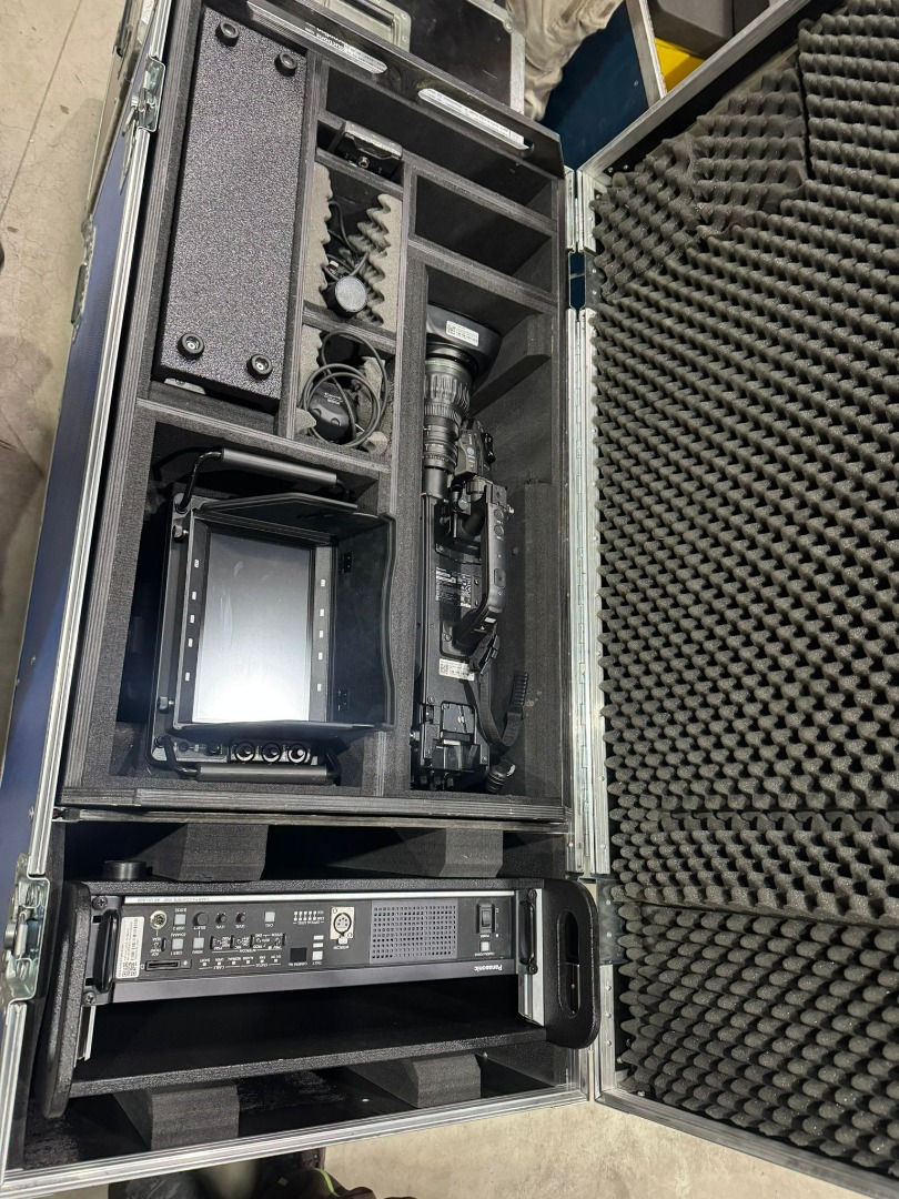 Zum Verkauf stehen zwei identische Broadcast Kamerazuege bestehend aus Panasonic AK UC4000 4K Studiokamera inklusive CCU RCP Canon Broadcast Optik sowie Stativsystem und umfangreichem Zubehoer