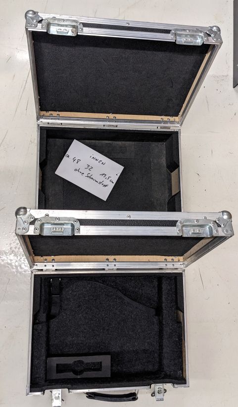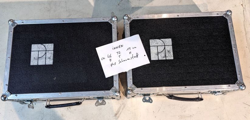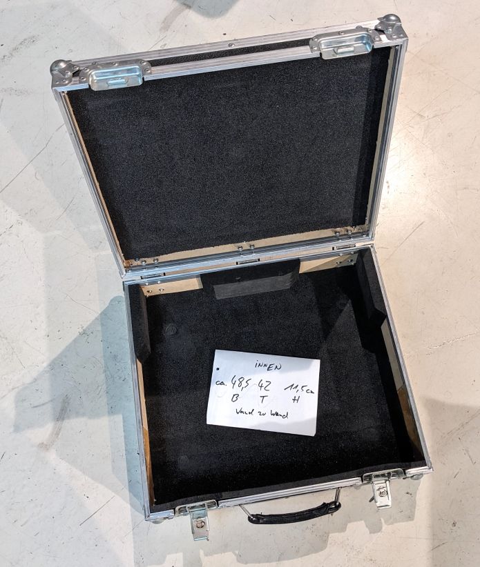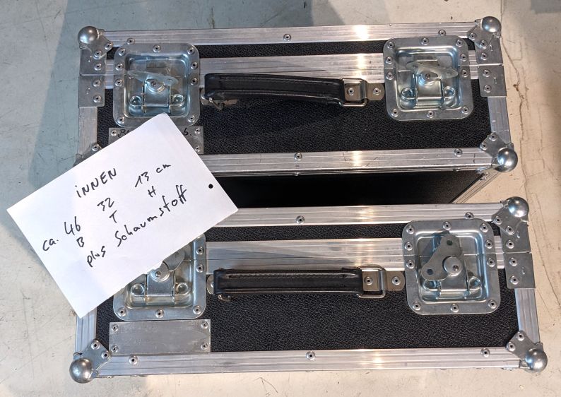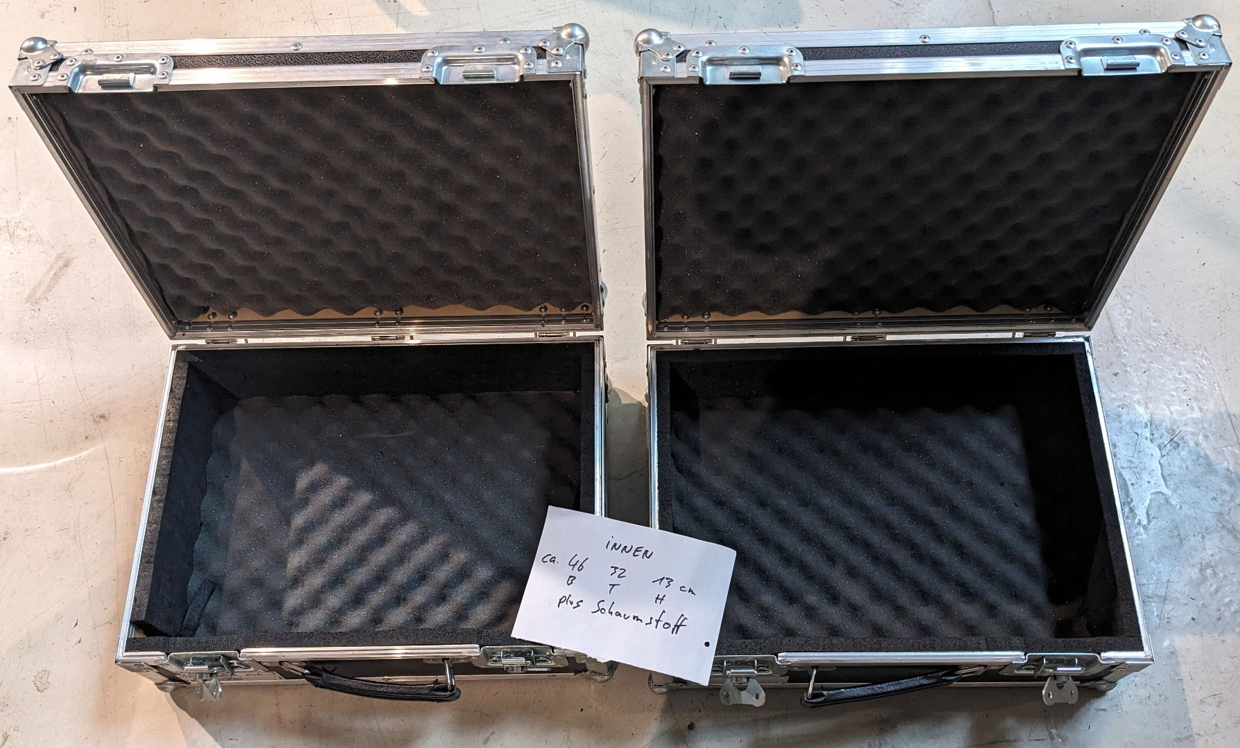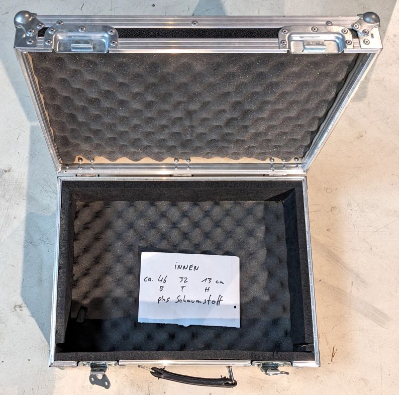 Flightcase Handkoffer mit leicht unterschiedlichen Innenmaßen / Innenausstattung.
