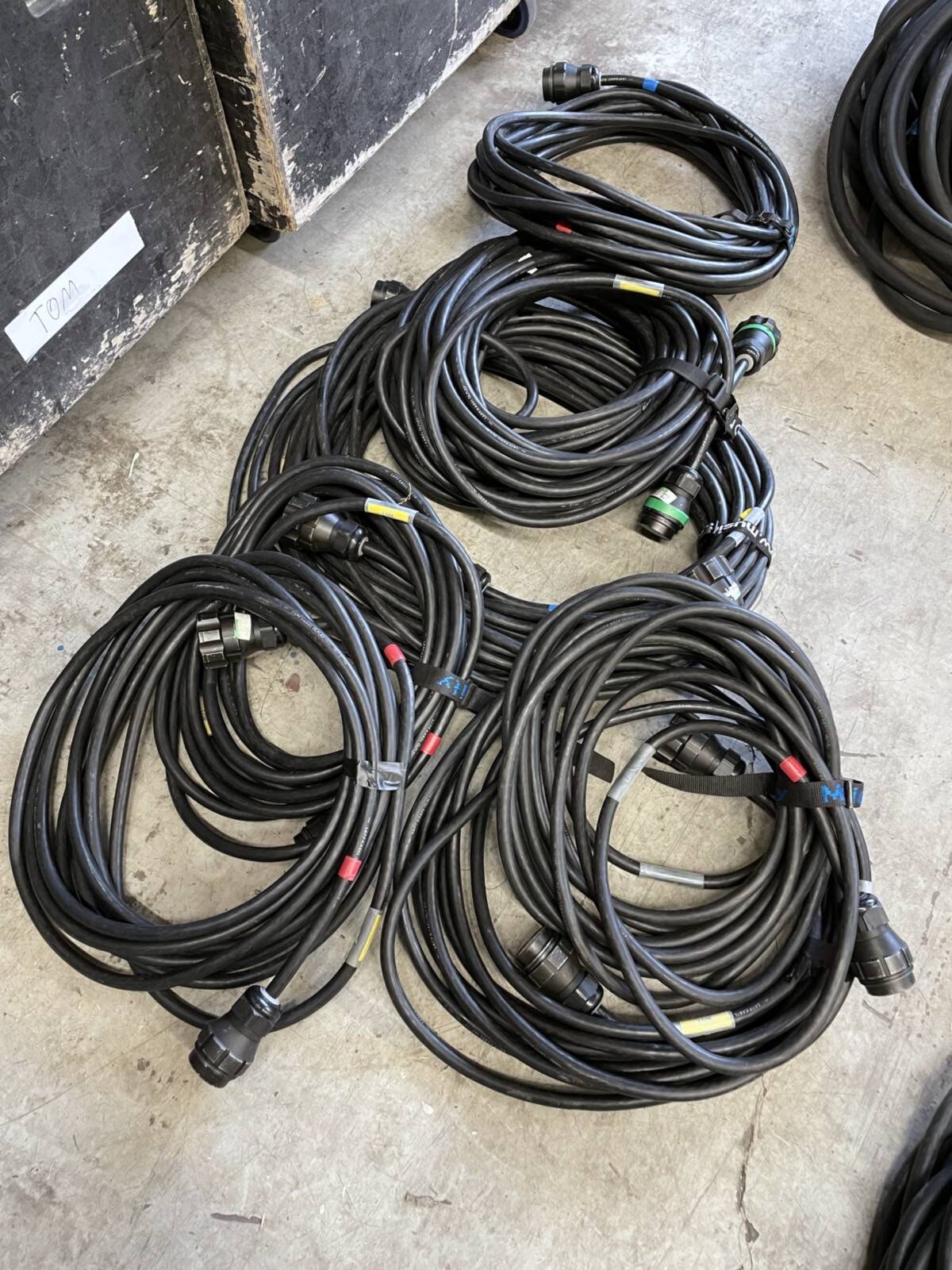 Set of Socapex cables featuring 1.5mm wire gauge, including four 10-meter cables, one 20-meter cable, and two 30-meter cables. Suitable for connecting stage equipment requiring reliable power distribution.