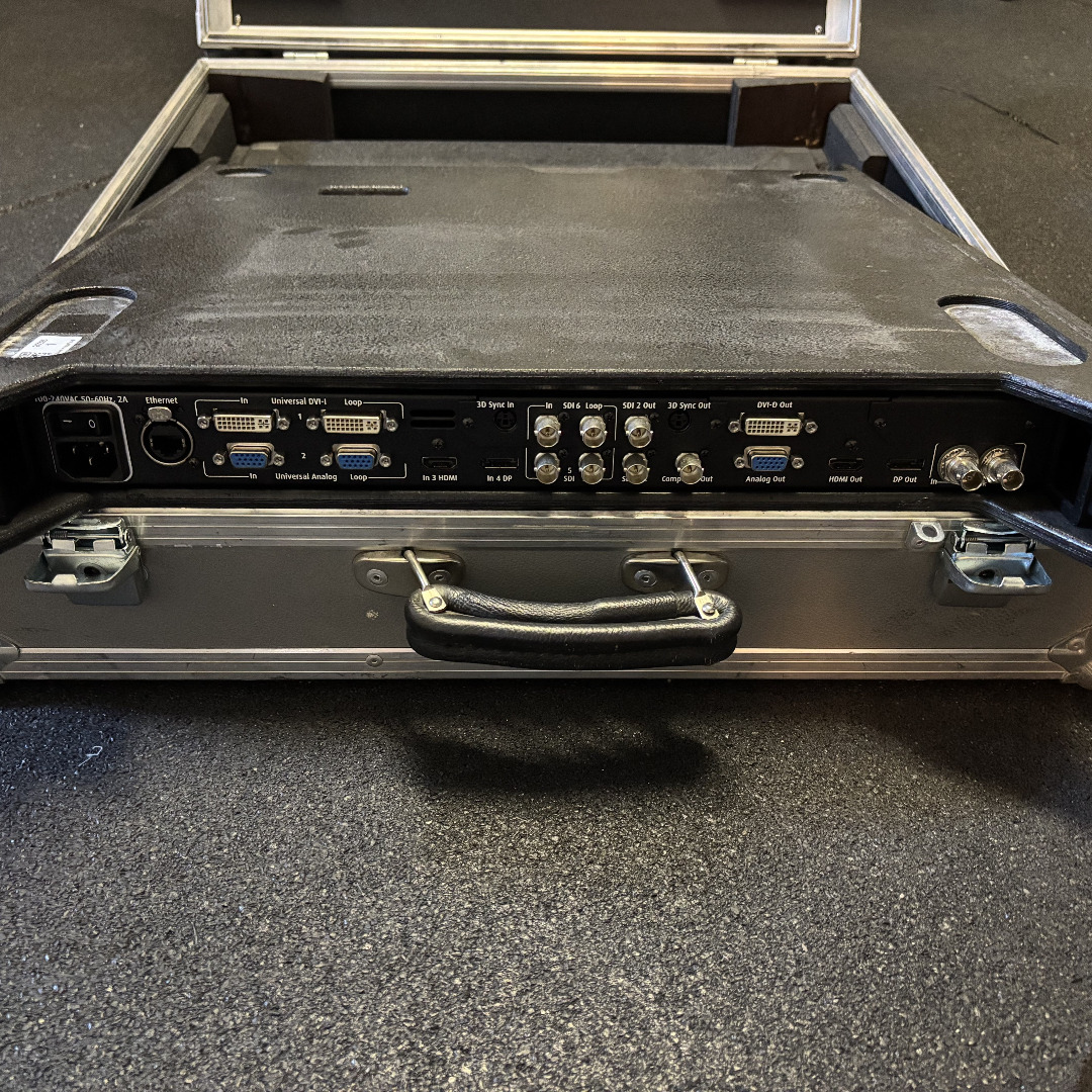 Zum Verkauf steht ein ImagePRO-II Dual Output 4K-Videoskalierer, Scan-Konverter und Switcher von Barco. Das Gerät ist in gutem gebrauchten Zustand und natürlich funktionstüchtig. Dazu gibt es ein 1-HE Rackmodul und das passende Case.