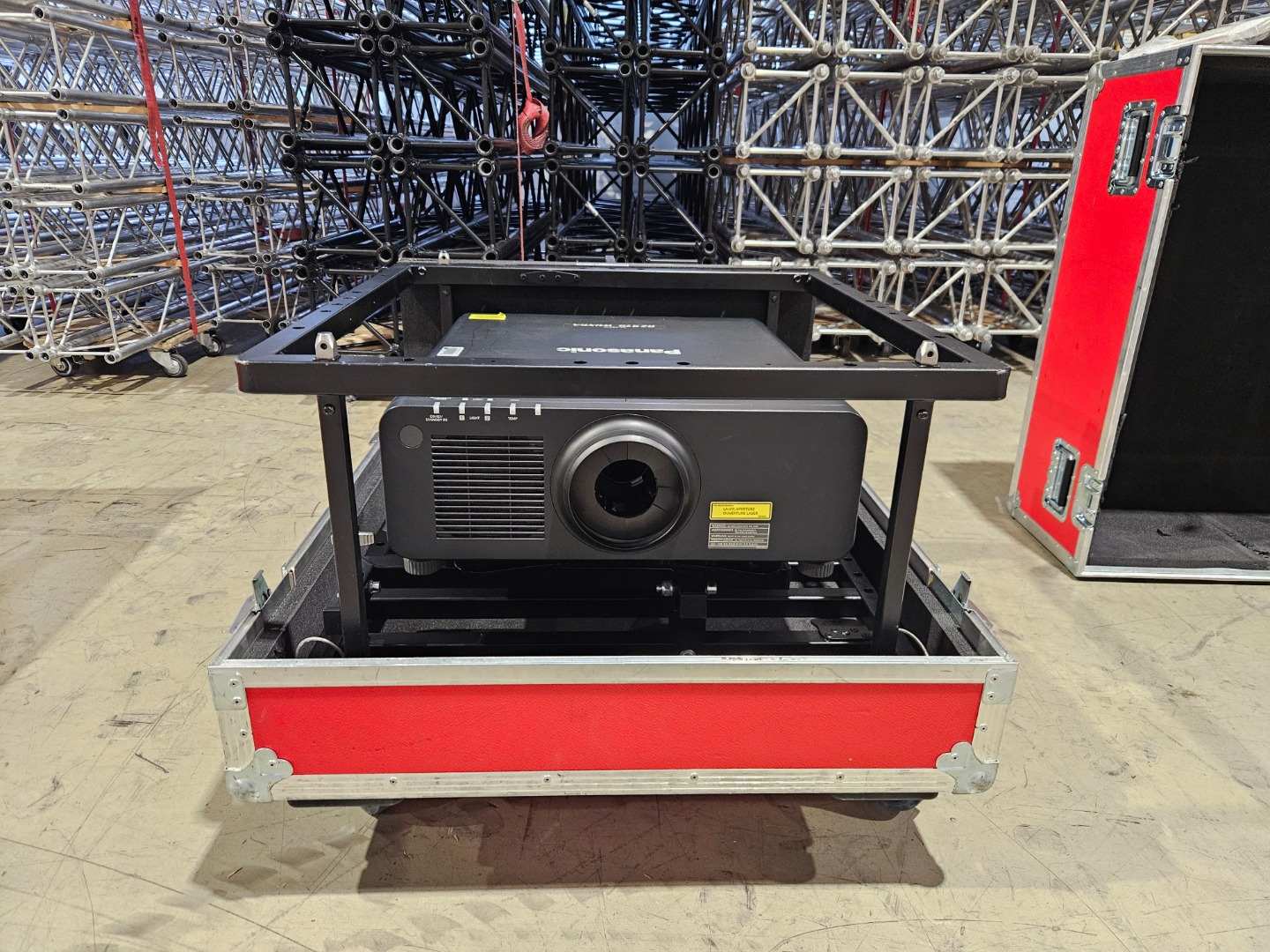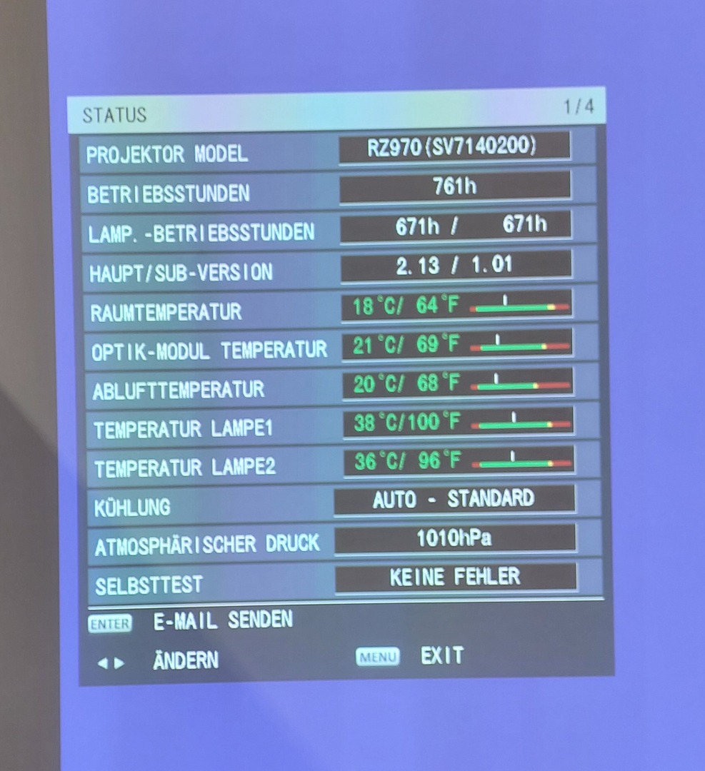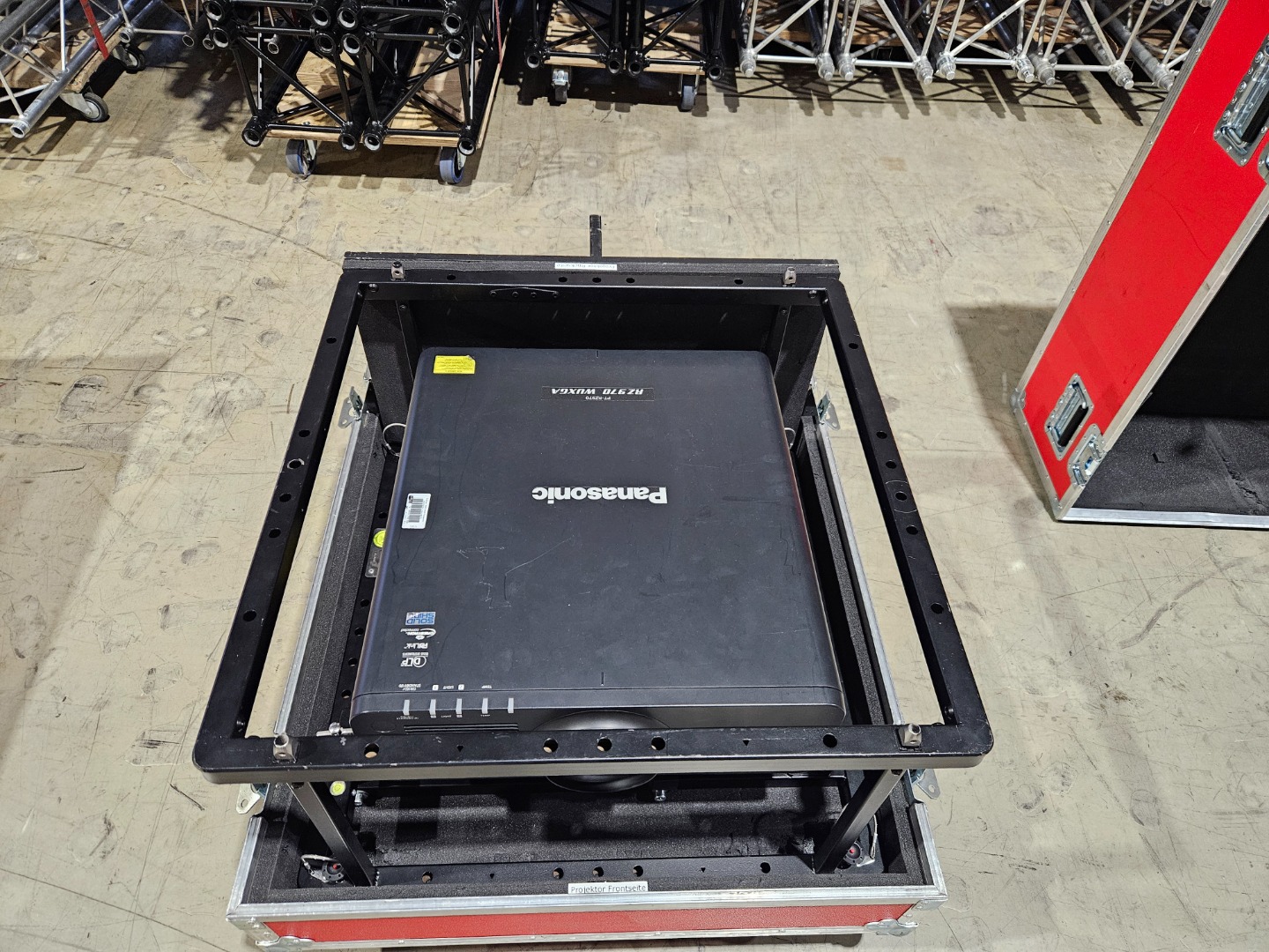 Verkauft werden unsere Panasonic RZ970 mit 9.400 ANSI Lumen, Geometrie Kit, Flugrahmen, Fernbedienung, Standard Optik und Case