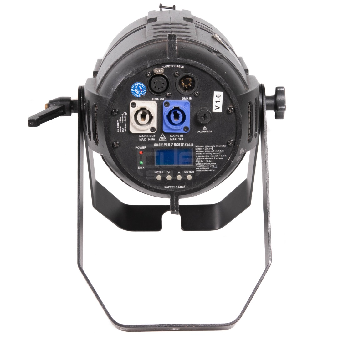The RUSH PAR 2 RGBW Zoom is a bright single-lens LED PAR Can with fully premixed color from 12 RGBW LEDs and a spectacular 10 – 60 ° zoom. It offers electronic dimming and strobe and comes with a flexible bracket for floor or truss mounting.