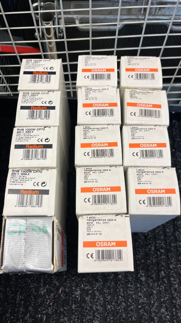- 9 x OSRAM 1000W/ 230V G22 CP71 á € 5,-