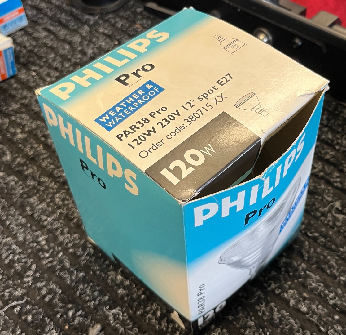 - 1 x Philips 120W/ 230V E 27 PAR 38 Pro á € 50,-