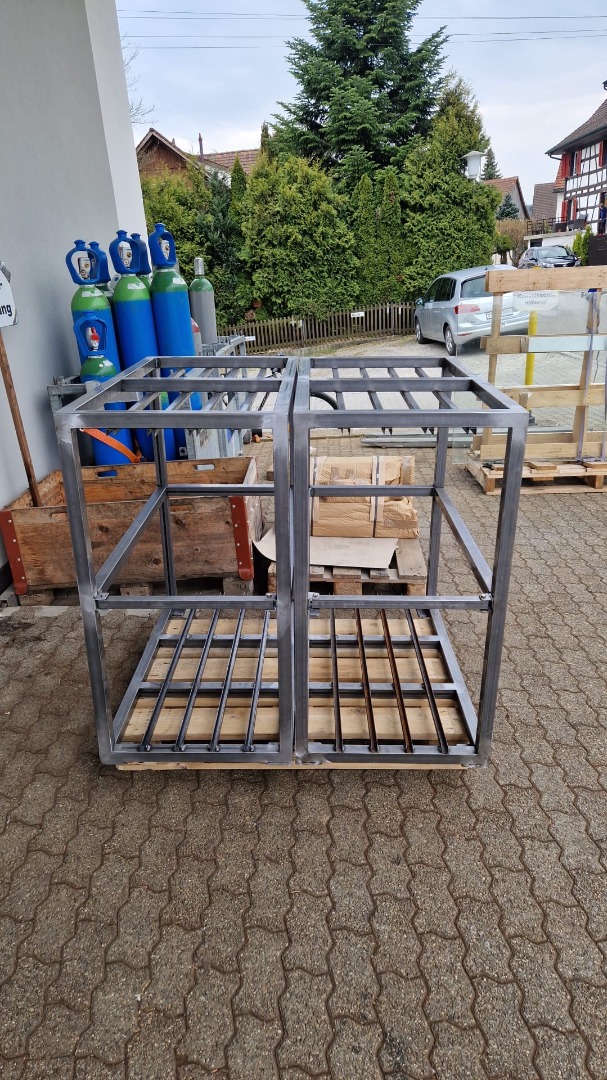 4er Dolly auf Rädern für FD 4x Stahlplatten 10mm mit oben und unten Führungsprofil für das richtige Lagern und Transportieren